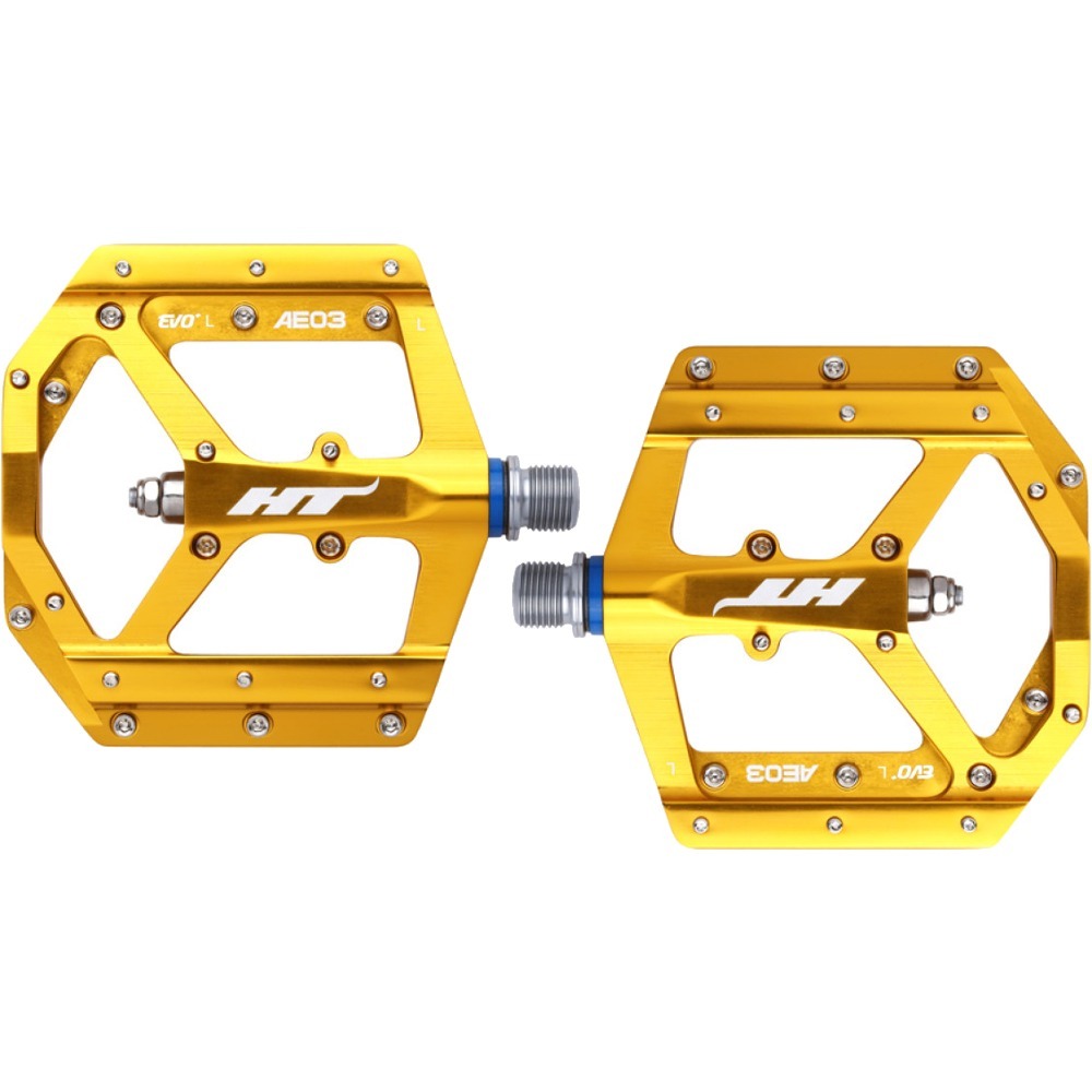 Pedały platformowe HT AE03 to doskonały wybór dla wymagających użytkowników specjalizujących się w downhillu, którzy oczekują maksymalnej przyczepności, trwałości i kontroli nad rowerem. Wykonane z lekkiego, a zarazem wytrzymałego aluminium, zapewniają optymalny stosunek wagi do wytrzymałości.