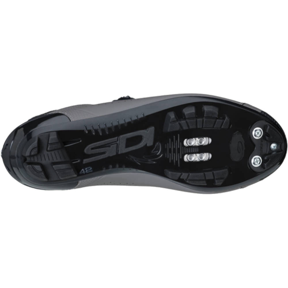 Lżejsza i bardziej wydajna podeszwa Sidi MTB jest wykonana z nylonu wzbogacona o wkładki PU (poliuretan). Kształt bieżnika podeszwy został specjalnie zaprojektowany do jazdy na rowerze górskim, zapewnia dobrą przyczepność, ułatwia odprowadzanie błota i odpowiednią stabilność. Środkowa wkładka z logo Sidi działa antypoślizgowo, jest praktyczna i przydatna zwłaszcza dla mniej doświadczonych użytkowników. Obszar palców, który jest bardziej narażony na zużycie, zwłaszcza podczas chodzenia, dlatego można go w łatwy sposób wymienić. SR17 zbalansowana jest pod względem dużej sztywności i komfortu podczas chodzenia.