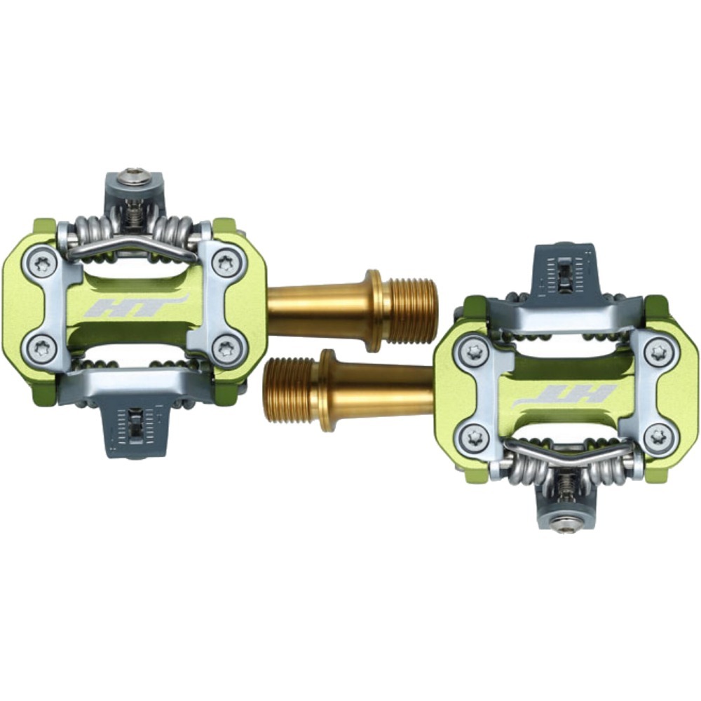Pedały rowerowe HT M2T to zaawansowany model zaprojektowany dla wymagających kolarzy poszukujących maksymalnej wydajności i trwałości. Wyróżniają się lekką, a jednocześnie niezwykle wytrzymałą konstrukcją, dzięki zastosowaniu precyzyjnie obrabianego aluminium CNC. Ich kluczowym elementem jest oś wykonana z tytanu, co nie tylko zmniejsza wagę pedałów, ale także zwiększa ich odporność na intensywne obciążenia, zapewniając optymalne przenoszenie mocy podczas dynamicznej jazdy.