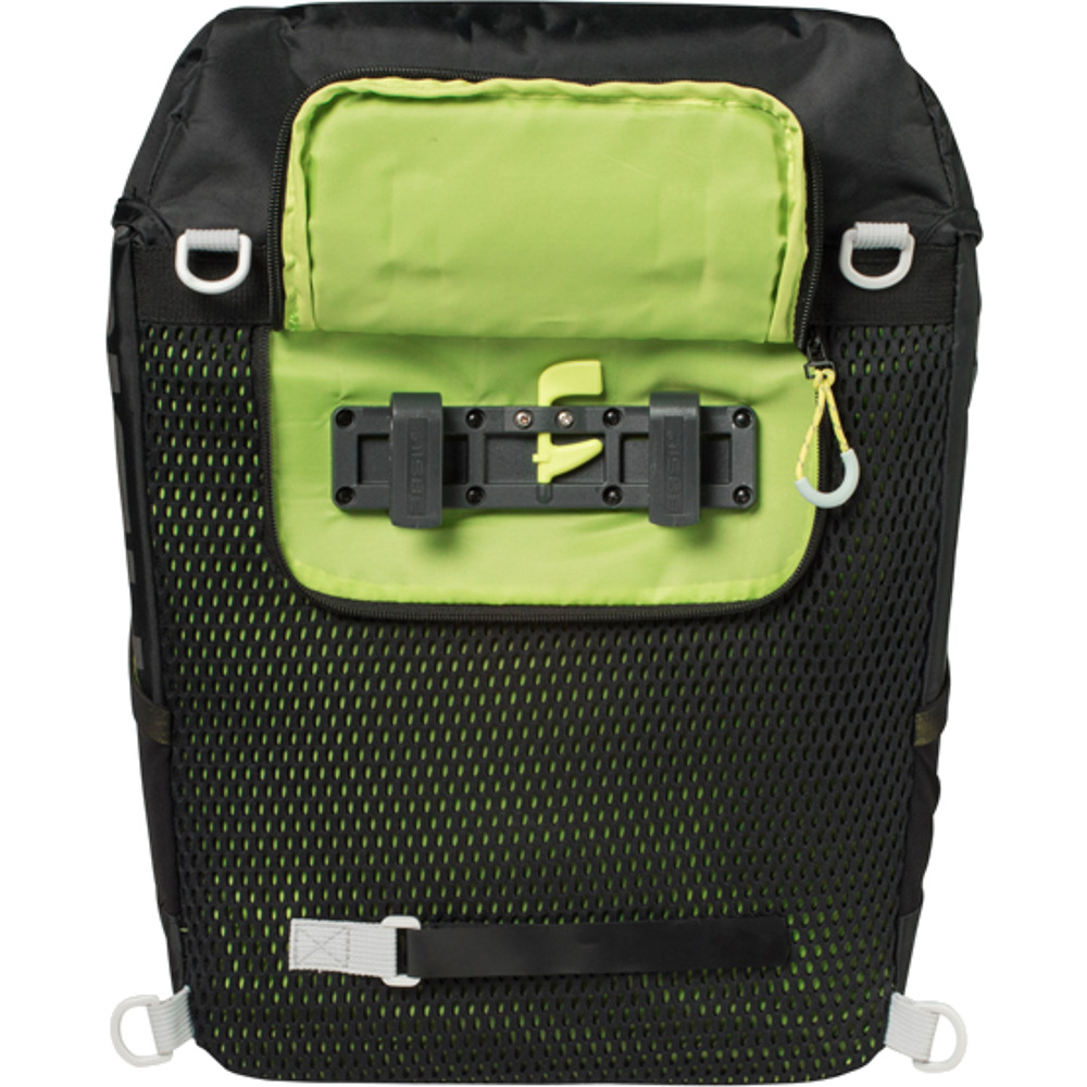Plecak/torba rowerowa Basil Miles Daypack Nordlicht montowany jest w prosty sposób z tyłu roweru za pomocą systemu Hook-On i jest do niego przystosowany. System do kupienia osobno.