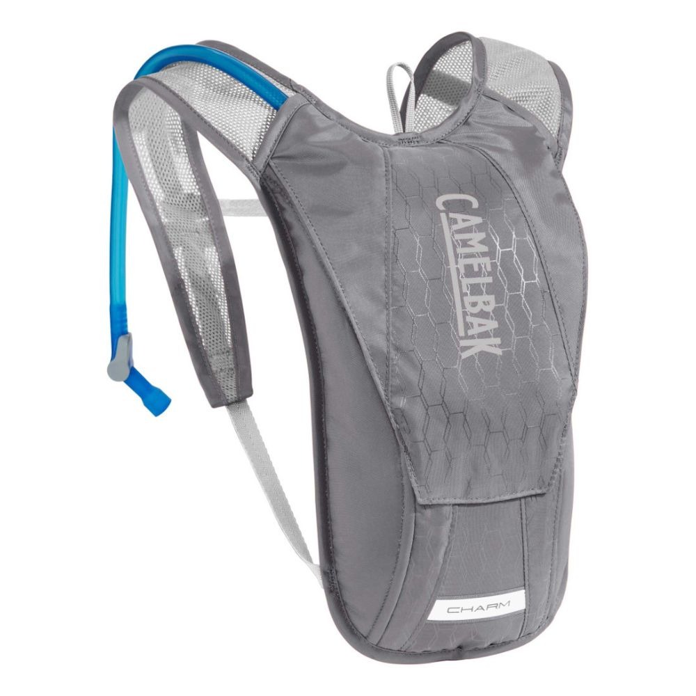 Plecak Camelbak Charm o pojemności 1,5l wraz z 1,5l bukłakiem przeznaczony jest dla kobiet, które uwielbiają jeździć na rowerze. To także propozycja dla wszystkich pań, które chciałyby mieć stały dostęp do ulubionych napojów, bez zbędnego bagażu. Ze względu na swoje gabaryty jest niemal niewyczuwalny podczas pokonywania ulubionych tras. W wyposażeniu znajdziemy udoskonalony bukłak Crux, dzięki któremu użytkowniczka zostaje lepiej nawodniona podczas jazdy. Plecak Camelbak Charm posiada pas piersiowy umożliwiający dopasowanie do sylwetki ciała. Tylny panel oraz szelki wykonane zostały z przewiewnego materiału, zapewniającego stałą wentylację oraz wygodę noszenia. Na jednej z szelek umieszczony został specjalny haczyk na rurkę bukłaka. Camelbak Charm posiada niewielką, zapinaną kieszeń, w której można przechowywać najpotrzebniejsze rzeczy. Produkt można łatwo chwycić lub zawiesić za pomocą haczyka umieszczonego na jego szczycie.