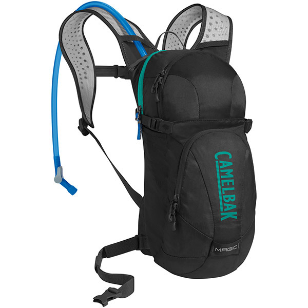 Plecak Camelbak Magic o całkowitej pojemności 7l wraz z 2l bukłakiem dedykowany jest kobietom, które uwielbiają jeździć na rowerze. Jego konstrukcja została dopasowana do anatomicznej budowy kobiet. W jego wyposażeniu znajduje się udoskonalony bukłak Crux z zaawansowanym systemem nawadniania Quick Link. Dzięki niemu użytkownik ma zapewniony lepszy o 20% przepływ wody podczas każdego zassania. Ponadto dla większego komfortu jazdy, plecak wyposażony został w pas biodrowy oraz piersiowy, umożliwiające dopasowanie plecaka do sylwetki ciała. Co więcej, plecak Camelbak Magic posiada system wentylacyjny umieszczony w tylnym panelu, a także w jego szelkach. Magnetyczne zapięcie rurki Tube Trap to kolejna z zalet plecaka. Rozwiązanie to zapewnia błyskawiczny dostęp do ulubionego napoju, nie martwiąc się o położenie rurki. Plecak Camelbak Magic zawiera także specjalne haczyki, dzięki którym można zamocować kask. Kieszenie oraz wewnętrzne przedziałki pozwalają na przenoszenie niezbędnych akcesoriów.