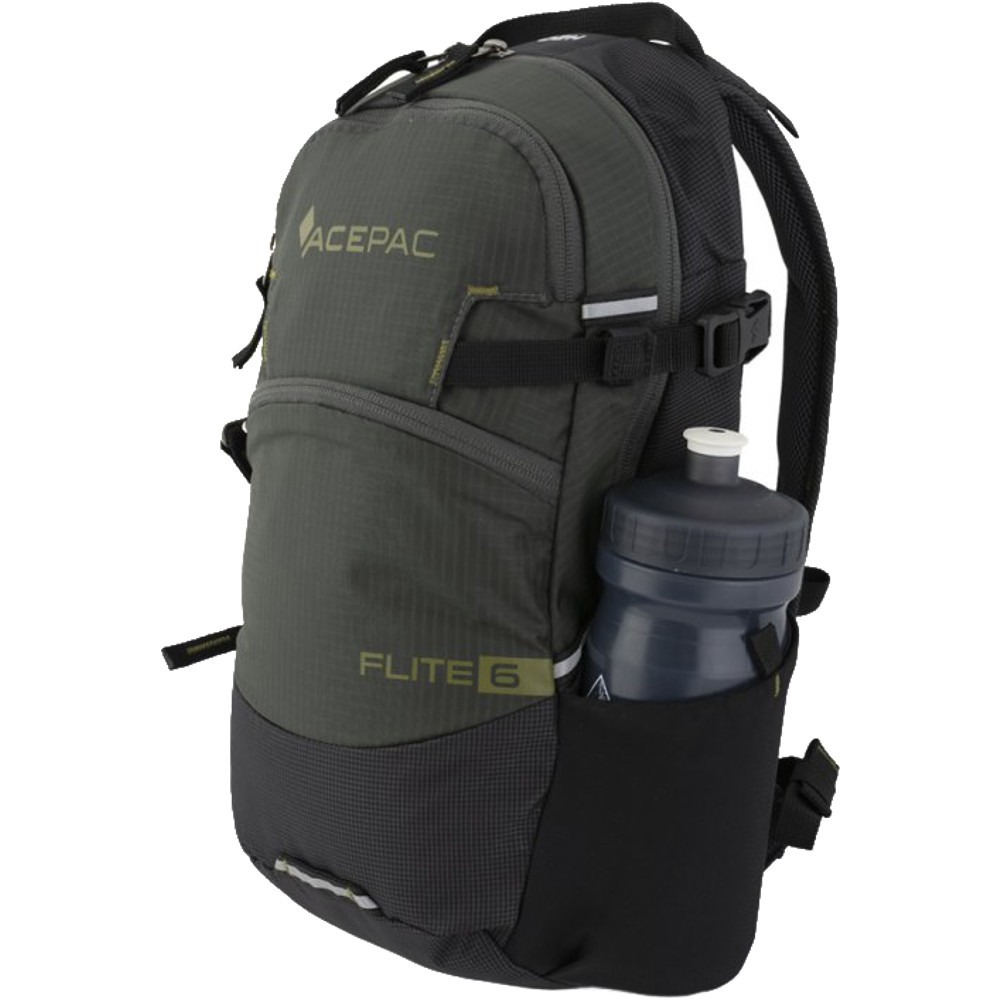 Dziecięcy plecak Acepac Flite 6 doskonale sprawdza się podczas biegania, pieszych wędrówek oraz wypraw rowerowych. Produkt został wykonany z wodoodpornego materiału Nylon 6.6, który jest wyjątkowo wytrzymały i odporny na przetarcia. Ponadto plecak wyposażono w wodoodporne zamki YKK oraz dołączono do niego pokrowiec przeciwdeszczowy. W ten sposób przechowywane w plecaku rzeczy mają zapewnioną maksymalną ochronę przed przemoczeniem. Wewnątrz plecaka można z łatwością zamocować bukłak z wodą i cieszyć się wygodnym nawadnianiem podczas podróży. Plecak poza główną komorą oferuje także wewnętrzną kieszonkę na zamek, która doskonale sprawdza się do przechowywania drobiazgów. Z kolei zewnętrzna boczna kieszeń nadaje się do przechowywania butelki lub bidonu. Na powierzchni plecaka Acepac Flite 6 umieszczono odblaskowe wstawki sprawiające, że będziesz lepiej widoczny po zmroku. Regulowane paski umożliwiają odpowiednie dopasowanie plecaka. Plecy zostały wzbogacone o specjalny system wentylacji E3D, który zapewnia bardzo dobrą cyrkulację powietrza i znacznie poprawia komfort podczas noszenia. Poza tym plecak posiada specjalną kieszeń przeznaczoną na ochraniacz pleców. Acepac Flite 6 jest kompatybilny z ochraniaczem Sas-tec SC-1/ CB42.