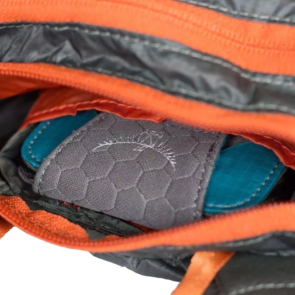 Plecak turystyczny Ultralight Stuff Pack o pojemności 18 litrów jest wykonany z niezwykle lekkiego, wytrzymałego i wodoodpornego nylonu. Waży on zaledwie 90 gram co sprawia, że świetnie nada się również na dłuższe wycieczki. Smukła konstrukcja wyposażona jest w system Deluxe AirMesh, który opiera się na poprawiającej komfort oraz cyrkulację powietrza wyściółce. Wilgoć jest efektywnie odprowadzana przez przewiewną siateczkę na szelkach. Specjalna dodatkowo zabezpieczona wewnętrzna kieszeń na cenne przedmioty bez problemu pomieści smartfon, portfel lub klucze. Z boku plecaka znajduje się także elastyczna kieszeń, przeznaczona do przenoszenia butelek z napojami.