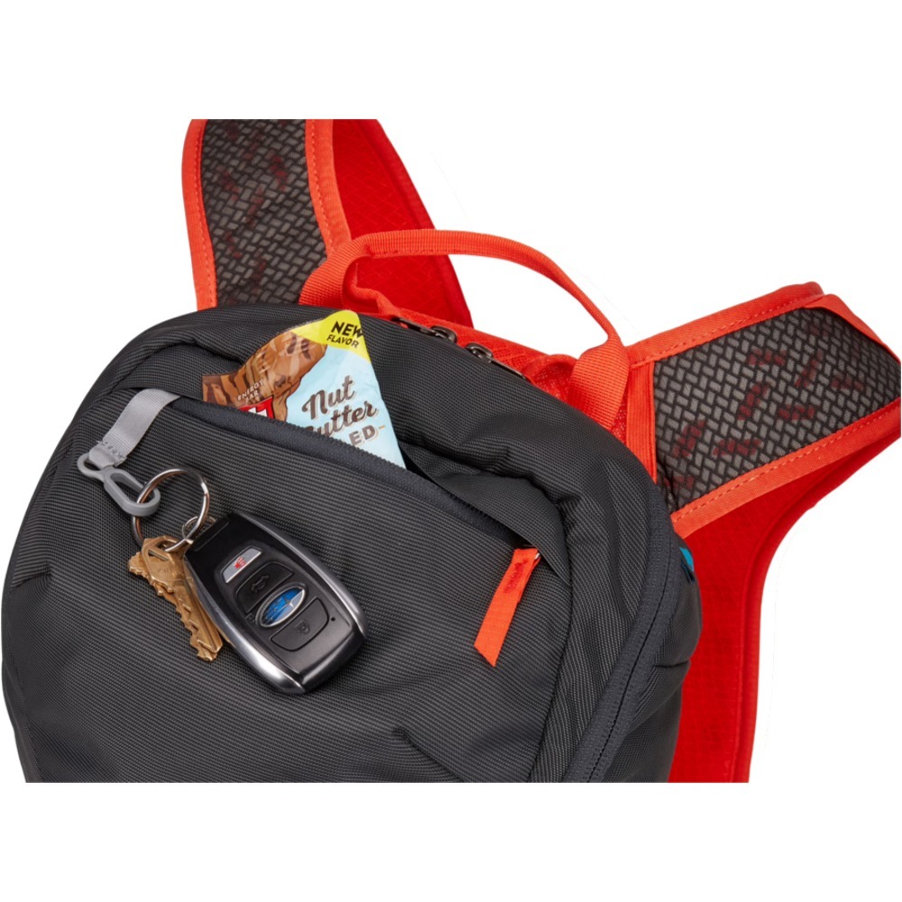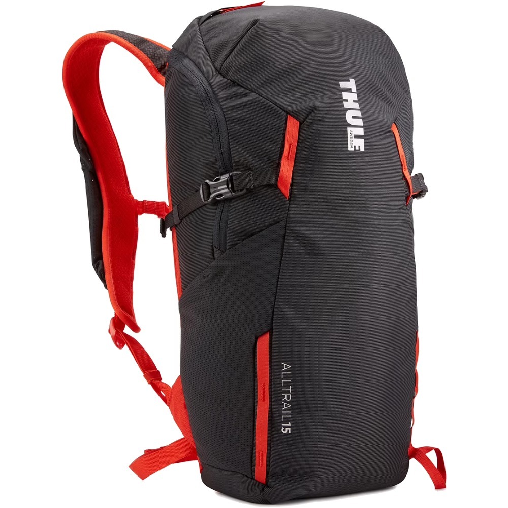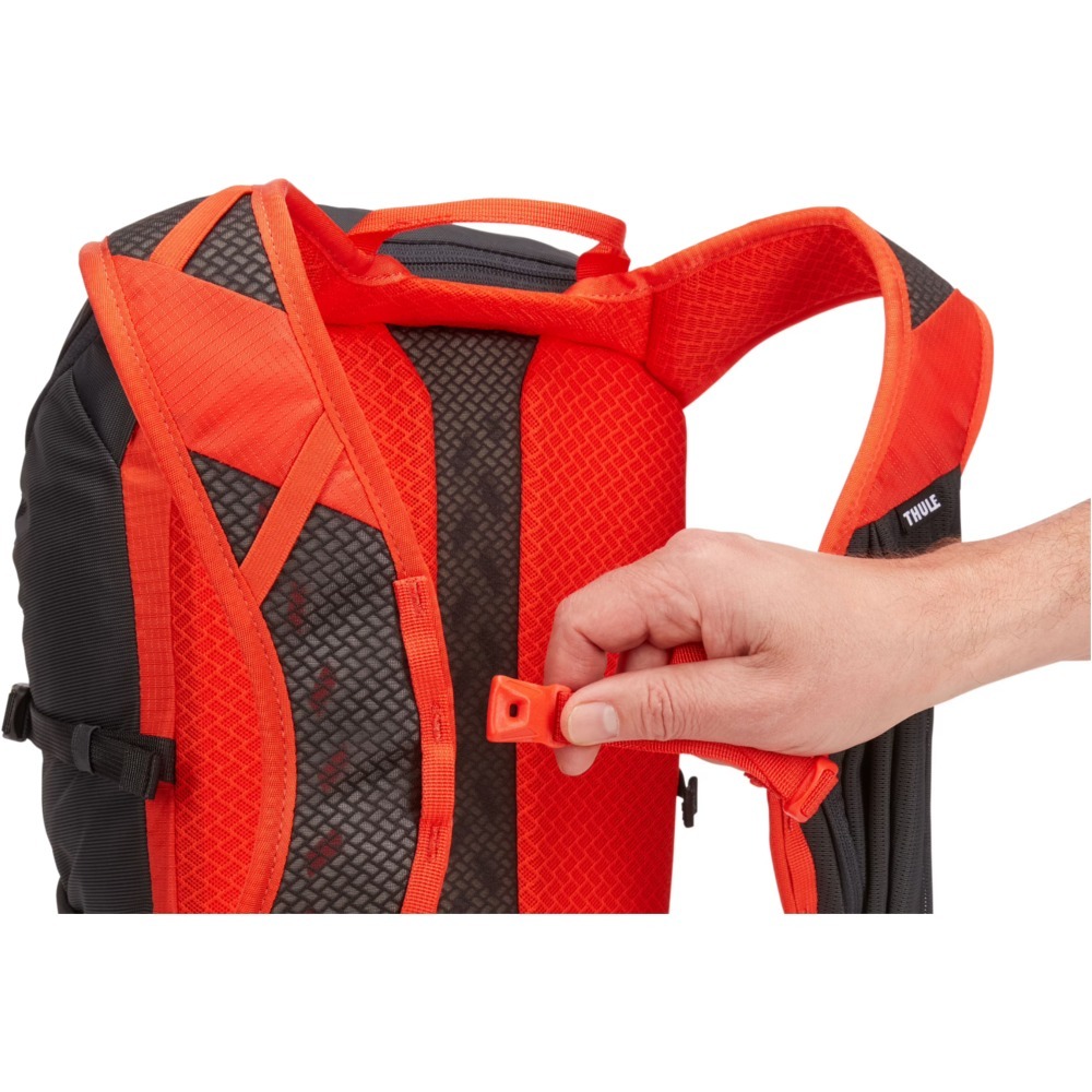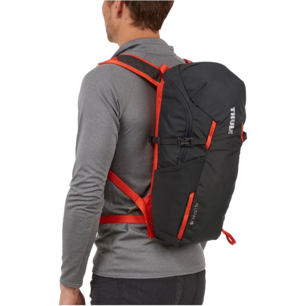 Thule AllTrail to lekki, 15-litrowy plecak doskonale sprawdzający się podczas krótkich wycieczek. Plecak posiada pętle mocujące, które służą do przypięcia kijków trekkingowych, czy czekanów. Sprzęt można też mocować do zewnętrznej strony plecaka za pomocą pasów kompresyjnych. W pokrywie plecaka umieszczono zapinaną na zamek kieszonkę, do której można schować potrzebne drobiazgi. Kolejna niewielka kieszonka została umiejscowiona na pasie naramiennym i doskonale sprawdza się do przechowywania telefonu, który cały czas będzie znajdował się w zasięgu ręki. Podczas ciepłej, słonecznej pogody doskonały komfort oferują wentylowane pasy naramienne oraz tylny panel. Dodatkowo podczas wyprawy warto się stale nawadniać. W tym celu plecak Thule AllTrail został przystosowany do umieszczenia bukłaka na wodę i przewidziano także specjalny otwór na rurkę. Bukłak nie wchodzi w skład zestawu, jest sprzedawany oddzielnie. Plecak posiada również regulowany, odpinany pas piersiowy oraz chowany pas biodrowy, które zapewniają odpowiednią stabilność oraz komfort podczas wypraw.