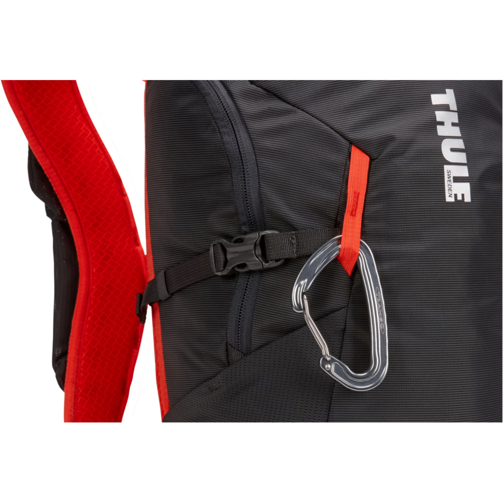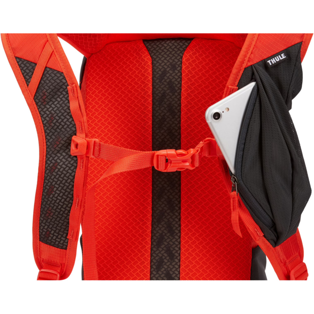 Thule AllTrail to lekki, 15-litrowy plecak doskonale sprawdzający się podczas krótkich wycieczek. Plecak posiada pętle mocujące, które służą do przypięcia kijków trekkingowych, czy czekanów. Sprzęt można też mocować do zewnętrznej strony plecaka za pomocą pasów kompresyjnych. W pokrywie plecaka umieszczono zapinaną na zamek kieszonkę, do której można schować potrzebne drobiazgi. Kolejna niewielka kieszonka została umiejscowiona na pasie naramiennym i doskonale sprawdza się do przechowywania telefonu, który cały czas będzie znajdował się w zasięgu ręki. Podczas ciepłej, słonecznej pogody doskonały komfort oferują wentylowane pasy naramienne oraz tylny panel. Dodatkowo podczas wyprawy warto się stale nawadniać. W tym celu plecak Thule AllTrail został przystosowany do umieszczenia bukłaka na wodę i przewidziano także specjalny otwór na rurkę. Bukłak nie wchodzi w skład zestawu, jest sprzedawany oddzielnie. Plecak posiada również regulowany, odpinany pas piersiowy oraz chowany pas biodrowy, które zapewniają odpowiednią stabilność oraz komfort podczas wypraw.