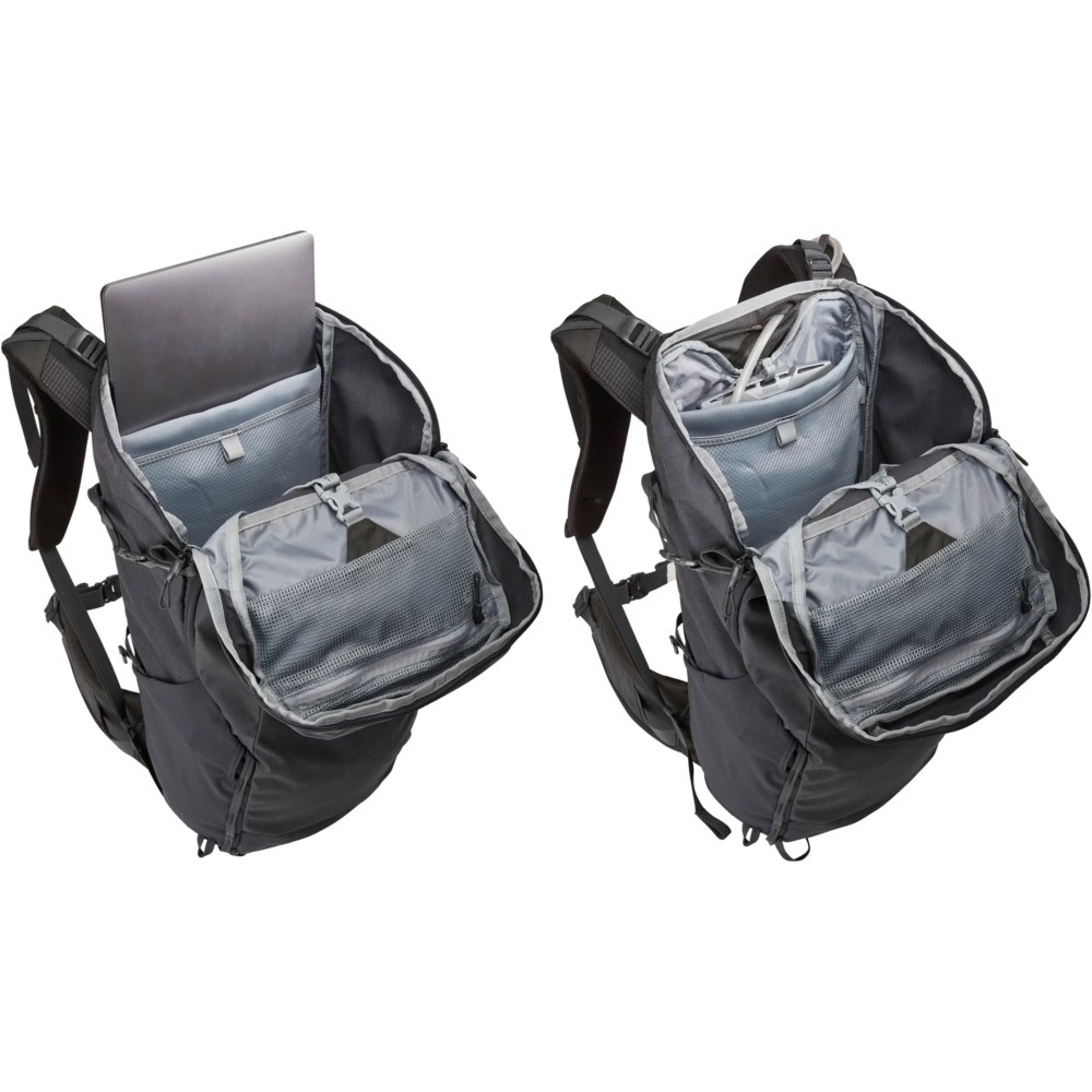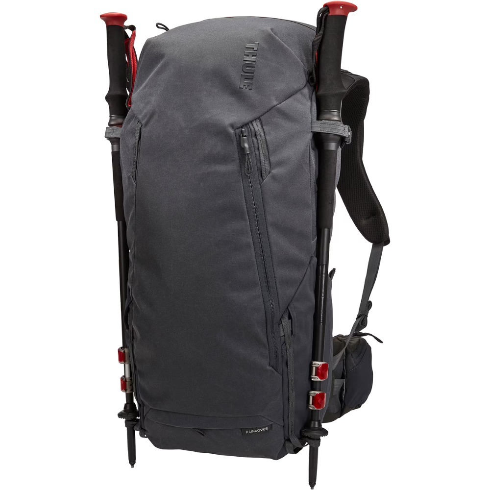 Thule AllTrail X to plecak, który doskonale sprawdza się zarówno podczas wycieczek na szlaku oraz w mieście. Plecak został w 50% wykonany z woskowanego brezentu poliestrowego z recyklingu. Materiał ten jest nawet 5 razy mocniejszy oraz bardziej wodoodporny niż tradycyjne woskowany brezent bawełniany. Plecak posiada pętle mocujące, które służą do przypięcia kijków trekkingowych lub czekanów. Sprzęt można też mocować do zewnętrznej strony plecaka za pomocą pasów kompresyjnych. Na pasie naramiennym umieszczono zapinaną na zamek kieszonkę, do której można schować telefon, czy inne potrzebne drobiazgi. Dodatkowe miejsce do przechowywania zapewnia przednia oraz górna kieszeń, a wewnątrz plecaka umieszczono także kieszeń z przewiewnej siatki, która pozwala zmieścić nawet 15-calowego MacBooka. Podczas ciepłej, słonecznej pogody doskonały komfort oferuje wentylowany tylny panel zapobiegający przegrzaniu. Z kolei podczas deszczowych wypraw bardzo dobrze sprawdzi się dołączony do plecaka pokrowiec przeciwdeszczowy, dzięki któremu przechowywane w nim rzeczy nie ulegną przemoknięciu. AllTrail X umożliwia także swobodną regulację w obszarze tułowia w zakresie 10 cm, co pozwala uzyskać odpowiednie dopasowanie.