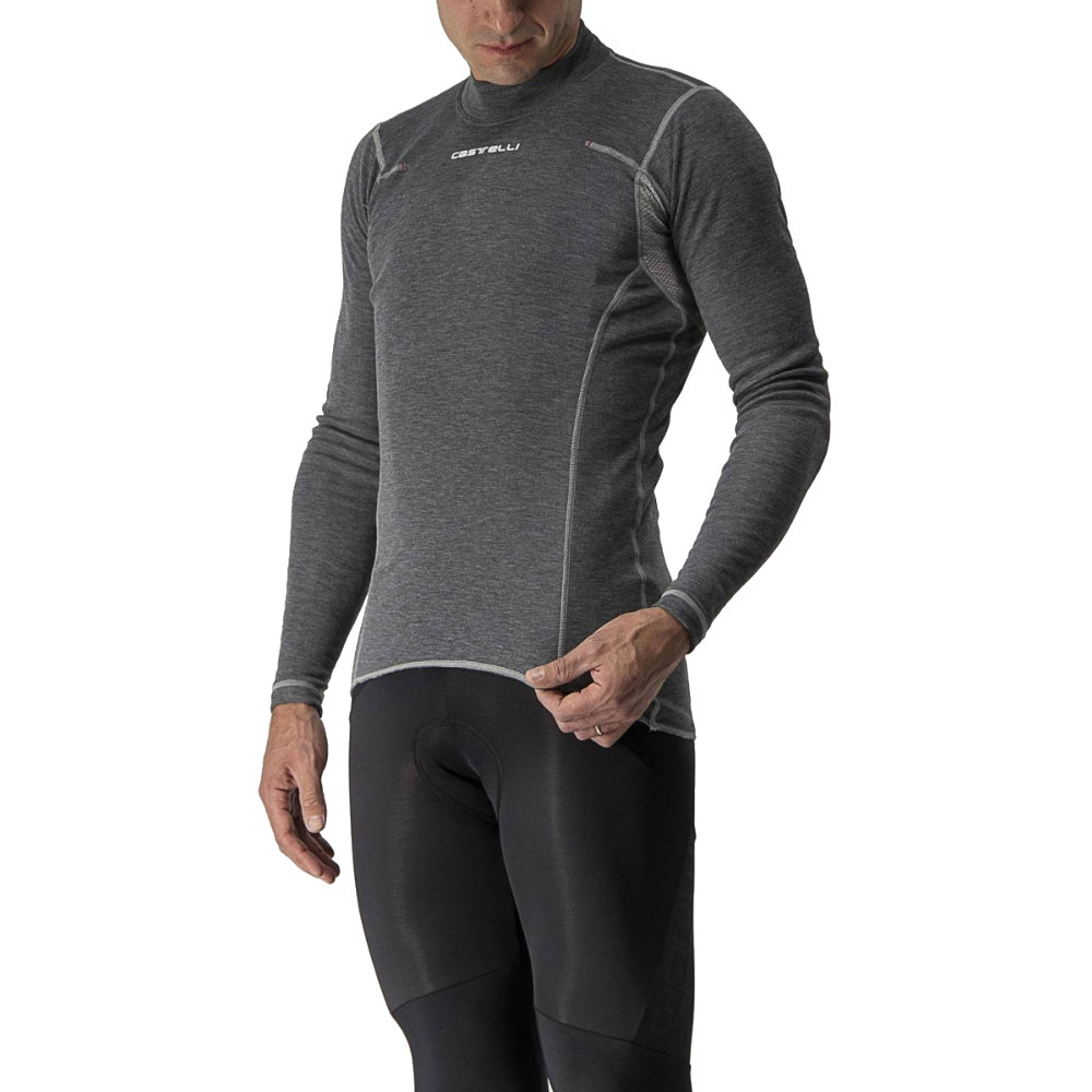 Ciepła podkoszulka termoaktywna Castelli Flanders Warm LS stworzona została do jazdy w kapryśnych, zimnych warunkach. Tkanina SottoZero Fleece o wielu gęstościach ze wstawkami z siateczki pod pachami dba o komfort termiczny i prawidłowe zarządzanie wilgocią. Koszulka jest bardzo elastyczna, świetnie dopasowuje się do ciała, pozytywnie wpływając na aerodynamikę. Dodatkowo płaskie szwy zapobiegają podrażnieniom i otarciom skóry.