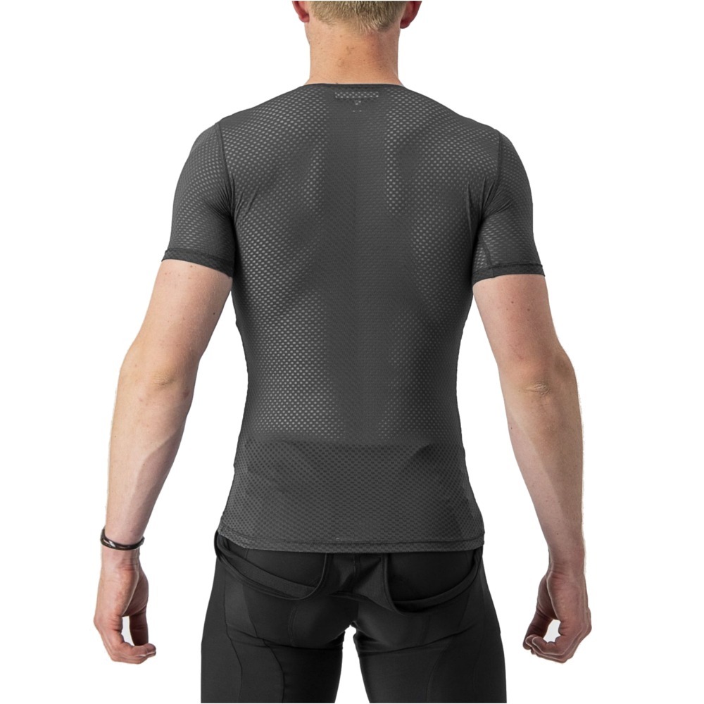 Podkoszulek kolarski z krótkim rękawem Castelli Pro Mesh został wyprodukowany z niezwykłą starannością. Jest nie tylko bardzo lekki (w rozmiarze L waży tylko 46 g!), ale również oddychający. Dzięki temu idealnie sprawdzi się na treningu czy na zawodach. Podkoszulek rowerowy Castelli Pro Mesh został w całości wykonany z tkaniny 3D Mesh. Charakteryzuje się ona świetnym odprowadzaniem wilgoci, co sprawia, że zachowasz komfort jazdy nawet przy intensywnej aktywności fizycznej, kiedy ciało mocno się poci. Podkoszulek na rower z krótkim rękawem Castelli Pro Mesh nie podwija się pod spodenkami, dzięki czemu nie uwiera i nie powoduje uczucia dyskomfortu.