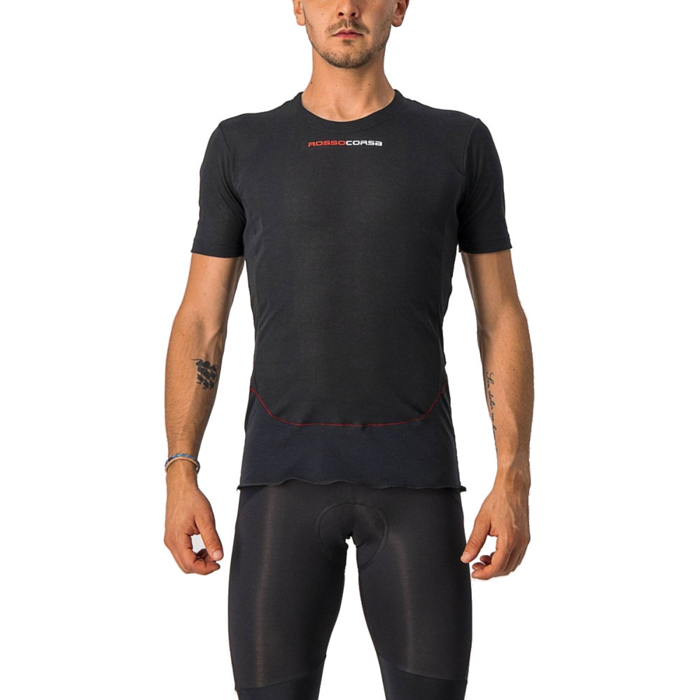Castelli Prosecco Tech to ciepły i bardzo wygodny podkoszulek kolarski z krótkim rękawem, który świetnie sprawdzi się w chłodniejsze dni. Został wyprodukowany ze hyrdofilowej tkaniny Prosecco, która rozprowadza wilgoć na większej powierzchni, przez co szybciej i skuteczniej ją odprowadza. Na plecach i w talii, czyli miejscach, w których na podkoszulek w połączeniu ze spodniami kolarskimi tworzy dwie, zachodzące na siebie warstwy, zastosowano bardziej oddychający materiał PrimaLoft® dla jeszcze lepszej wymiany termicznej.
