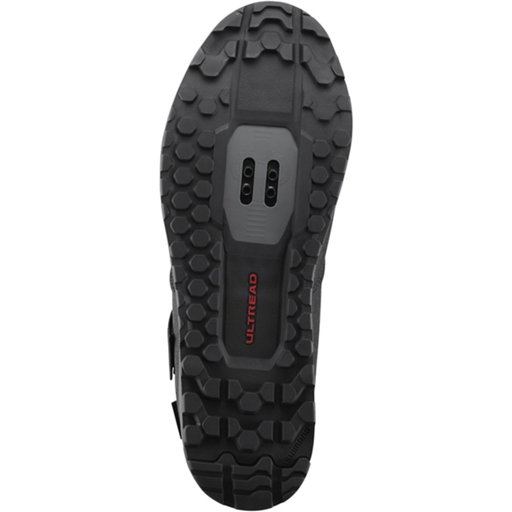 Buty Shimano GE-500 to uniwersalny model butów SPD do jazdy enduro. Łączą one w sobie ciekawie wzornictwo, przyczepność podczas chodzenia oraz ochronę, dzięki zastosowaniu wyższego, asymetrycznego kołnierza kostki z dodatkową wyściółką.