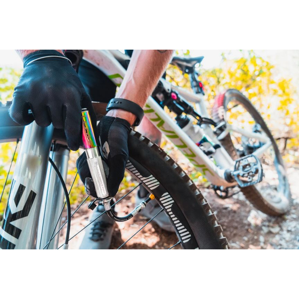 Ręczna pompka rowerowa niezwykle lekka i kompaktowa, wysokociśnieniowa o dużej wydajności pompowania. Wykonana z bardzo wytrzymałego aluminium obrabianego CNC z cylindrem o radełkowanym kształcie, by zapewnić ochronę przed poślizgiem. Dzięki zachodzącej na siebie rączce i zintegrowanemu przewodowi ABS Flex Hose, Pocket Drive Pro oferuje wydajność niezrównaną w swoim rozmiarze.Przewód zawiera również zintegrowane narzędzie do rdzenia zaworu. Pompka jest kompatybilna z zaworami Presta i Schrader i można ją całkowicie odbudować w celu dalszego użytkowania na wysokim poziomie. Wyposażona jest w elegancko obrobiony aluminiowy uchwyt do ramy.