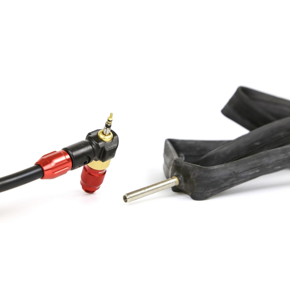 THREADED CONNETION - Podwójnie gwintowane zakończenia, pasujące zarówno do dętek typu Presta jak i zaworów Schrader powodujące połączenie podczas pompowania jest bezpieczne.