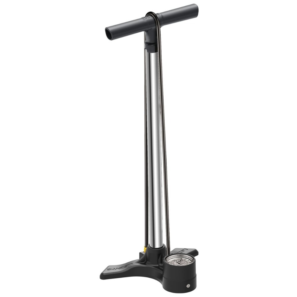 Dzięki wydajnemu przerpływowi powietrza, jesteśmy w stanie bardzo szybko napompować oponę do pożądanego ciśnienia. Długi wąż z końcówką ABS Flip Chuck pozwala na obsługę zarówno wentyli Presta jak i zaworów Schradera. Maksymalne zalecane ciśnienie to 220 PSI (15 bar).