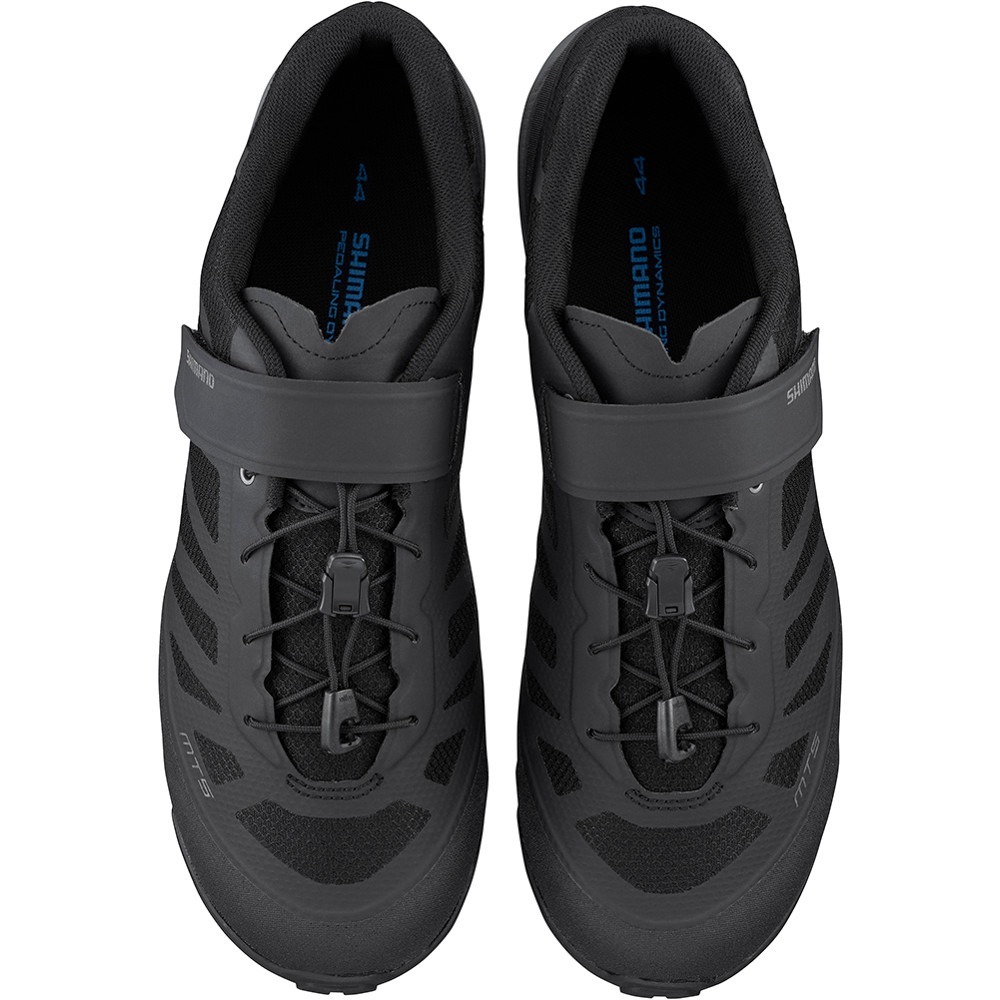 Shimano SH MT502 to wyczynowe buty do jazdy terenowej. Charakteryzują się niezwykłą lekkością butów do pieszych wypraw. W produkcie zastosowano system szybkiego sznurowania wraz z paskiem na podbiciu do szybkiej i łatwej regulacji dopasowania. Wierzch ma siatkę z panelami w sportowym stylu. Gwarantuje to doskonałą przewiewność produktu, co przyda się szczególnie podczas intensywnego wysiłku. Śródstopie zostało wzmocnione włóknem szklanym, co zapewnia optymalną sztywność podeszwy. Amortyzująca podeszwa środkowa z pianki EVA i gumowa podeszwa zewnętrzna zapewniają wygodę podczas jazdy i chodzenia.