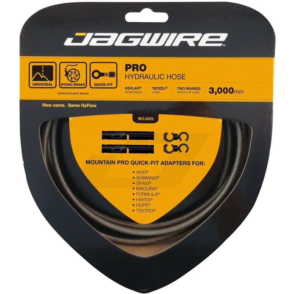 Jagwire Mountain Pro jest zaawansowanym przewodem hydraulicznym przeznaczonym do hamulców w rowerach. Wzmocnienie kevlarem usztywniło konstrukcje i zniwelowało efekt rozpierania podczas nacisku płynu. Takie rozwiązanie pozwoliło poprawić transport energii z dźwigni hamulca do zacisku, a co za tym idzie siłę hamowania. Dodatkowa wkładka wewnętrzna Tefze usprawnia przepływ płynu i szybkość reakcji na wciśniecie hamulca. Przewód hydrauliczny jest przystosowany zarówno do pracy z płynami hamulcowymi DOT, jak i z olejem mineralnym. Kompatybilny ze wszystkimi popularnymi modelami klamek i zacisków za pomocą adapterów Quick-Fit (sprzedawane osobno).