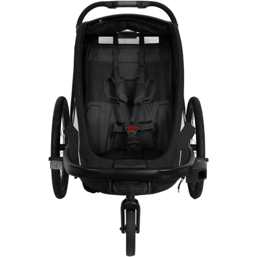 Za bezpieczeństwo podczas spacerów czy biegów odpowiada hamulec na kierownicy, który w łatwo dostępny sposób pozwala zmniejszyć prędkość przyczepki. Rączka przyczepki została wykonana z miękkiej i przyjemnej w dotyku pianki. Z tyłu przyczepki znajduj się odpinana torba, która po zdemontowaniu służy jako plecak. Dzięki temu możesz mieć zawsze pod ręką zapasowe pieluchy lub inne niezbędne przedmioty, które zabierzesz do sklepu lub kawiarni.
