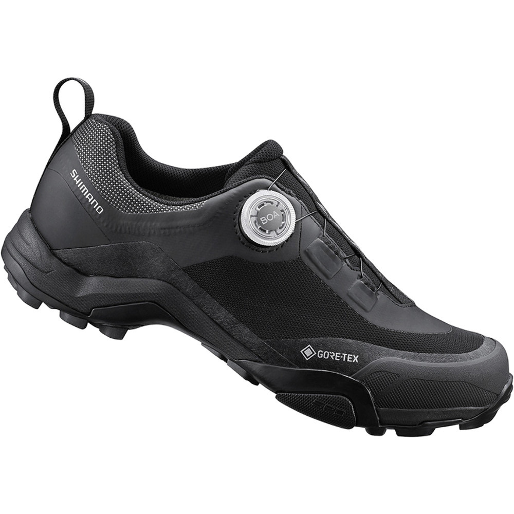 Buty rowerowe SH-MT701GTX to obuwie wszechstronne - sprawdzą się zarówno przy uprawianiu turystyki górskiej, rowerowej jak i w codziennych dojazdach do pracy. Wyposażone zostały w system pokręteł Boa® L6, dzięki czemu regulacja wiązania jest szybka i precyzyjna. SH-MT701GTX to także lepsze przenoszenie mocy dzięki specjalnemu systemowi do współpracy z pedałami SPD. Oddychająca, wodoszczelna wyściółka GORE-TEX sprawia, że stopy pozostają suche nawet podczas najgorszych warunków pogodowych. Gumowa konstrukcja śródstopia wykorzystuje amortyzującą Piankę Eva, dzięki czemu buty SH-MT701GTX są wygodne podczas spacerów pieszo oraz podczas pedałowania.