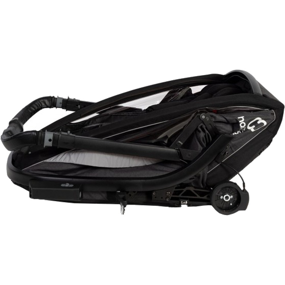 Za bezpieczeństwo podczas spacerów i biegania na wzgórzach odpowiada hamulec na kierownicy, który w łatwo dostępny sposób pozwala zmniejszyć prędkość przyczepki. Z tyłu przyczepki znajdują się torby na niezbędne w trakcie wycieczki rzeczy, które są odpinane. Dzięki temu możemy je zabrać ze sobą do sklepu, kawiarni.