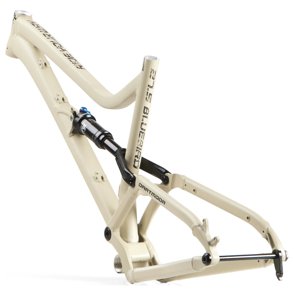 W Bluebirdzie 27.5 zastosowano górną rurkę o podgiętym kształcie, zapewniającą niski przekrok ramy. Rama dedykowana jest pod piasty w standardzie Boost 148x12 mm, damper metryczny 210x50 mm i można w niej zamontować opony 27.5" w rozmiarze od 2.3” do 2.8”. Aby zapewnić odpowiednią sztywność konstrukcji przedni trójkąt połączony jest z wahaczem osią o średnicy aż 17 mm, wspartą przy tym 3 dużymi łożyskami typu Max ze zwiększoną ilością kulek, zabezpieczonych specjalnie dobranym wodoodpornym smarem marki Mobil.