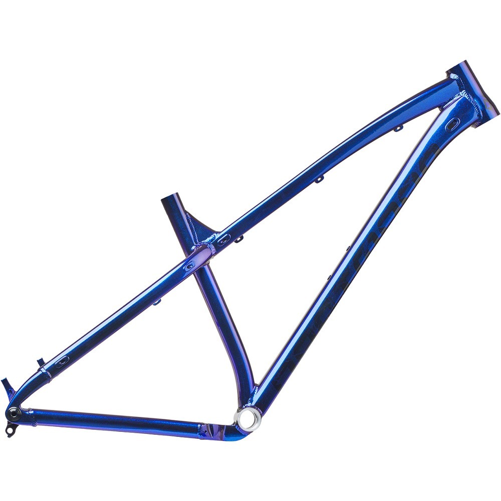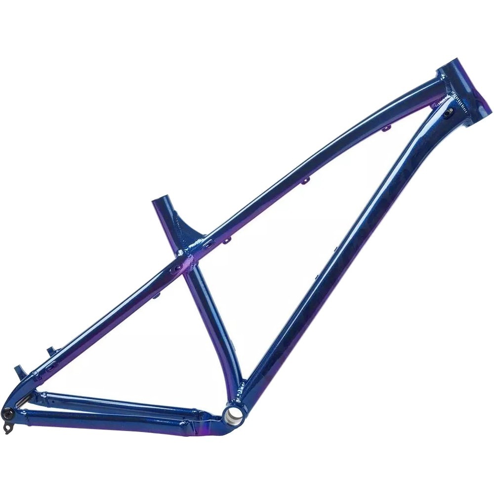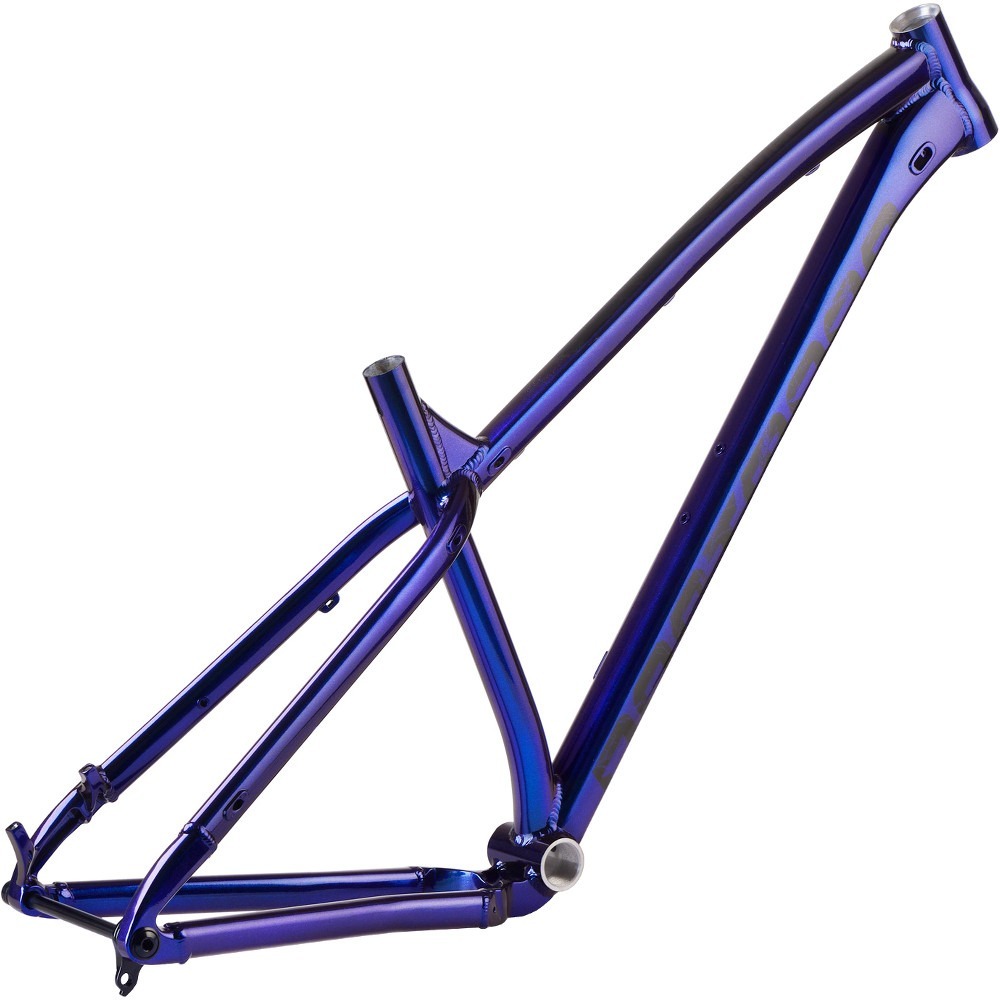 Rama Primial 27.5 w limitowanym kolorze Cosmic połysk stworzona jest z myślą o eksplorowaniu nowych, dzikich ścieżek, pokonywaniu krętych tras flow trail, a nawet na weekendową zabawę w bikeparku. Swoją wszechstronność zawdzięcza kompatybilnością z kołom 27,5" które są zwrotne w terenie, a także dosyć dobrze utrzymują prędkość. Geometria ramy również została minimalnie zaczerpnięta z rowerów dirtowych, abyś mógł łatwiej nauczyć się bunny hopa lub przykuwać wzrok innych licznymi manualami podczas przejazdu. Nie zapomniano też o wypłaszczeniu kąta główki ramy by strome ścianki czy sekcję z kamieniami pokonywać pewnie i szybko. Rama jest przystosowana do współpracy z widelcami 140mm skoku, oznacza to, że nawet bardzo wyboista i kamienista trasa stanie się płynna. Do nowego Primala możesz zamontować 27,5 calowe opony w szerokości nawet 2.6, uczyni to jazdę jeszcze bardziej przyjemną, komfortową i bezpieczną z uwagi na lepszą przyczepność. Wspomniany wcześniej limitowany kolor Cosmic zmienia się z niebieskiego w fioletowy i odwrotnie w zależności od kąta padania światła.