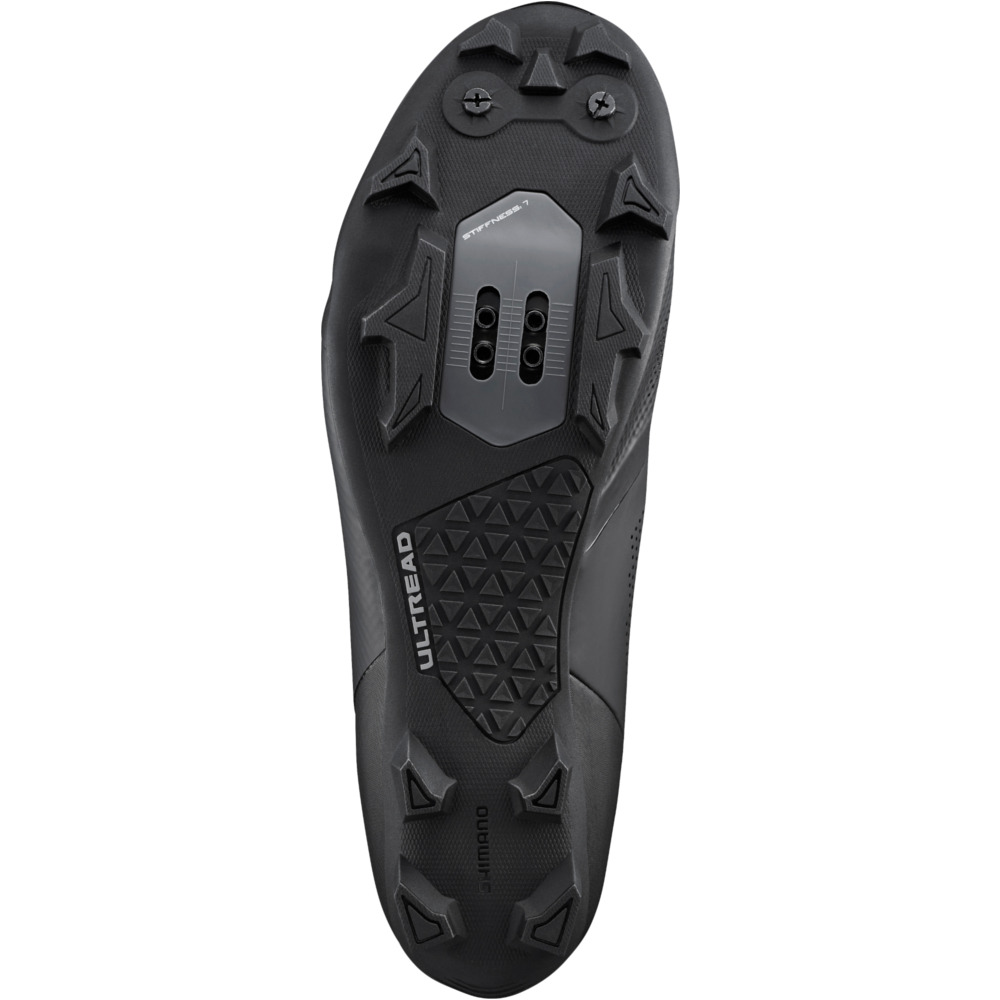 Buty rowerowe Shimano SH-XC502 są bardzo solidne. Podeszwa środkowa wzmocniona została włóknem szklanym, co zapewnia lepsze przenoszenie się mocy. Lekka podeszwa środkowa została wzmocniona karbonem. Zewnętrzna gumowa podeszwa SHIMANO ULTREAD XC sprawia, że buty zapewniają bardzo dobrą przyczepność na poziomie wyczynowym. Płaska podeszwa środkowa stabilizuje stopę i gwarantuje maksymalną moc i wydajność. Pokrętło na podbiciu Boa® L6 pozwala na szybką oraz precyzyjną regulację butów. Dzięki opcji wymieniania kolców możesz wybrać odpowiednie kolce do warunków oraz stylu jazdy. Odporne na ścieranie końcówki TPU zapewniają wygodę chodzenia. Opracowany system kompatybilny jest z pedałami SPD.