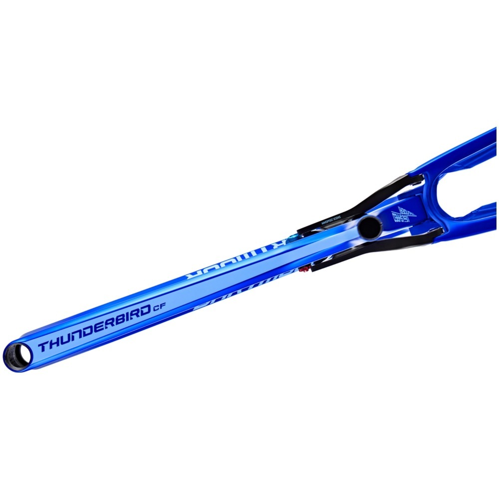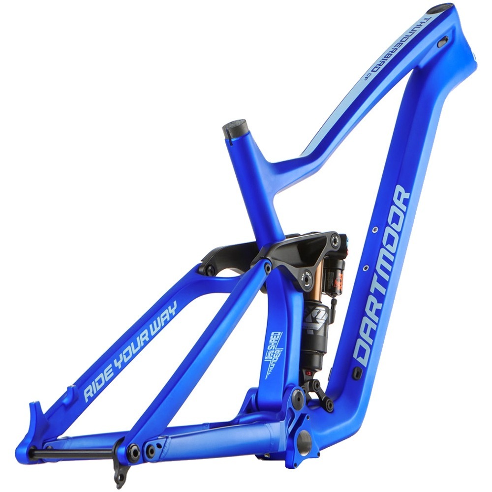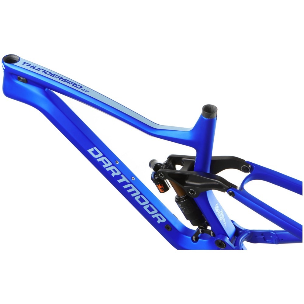 Dartmoor Thunderbird CF to carbonowa rama przeznaczona do enduro. Geometria przystosowana do kół w rozmiarze 29" jest agresywna i skoczna. Świetnie radzi sobie w bikeparkach oraz trudnym terenie. Lekkość oraz sztywność osiągnięto stosując włókno carbonowe. Grube ścianki oraz szereg testów gwarantują wytrzymałość ramy. Dodatkowo aluminium wzmocnione zostały najbardziej narażone gniazda oraz dolne widełki tylnego trójkąta. Wszystkie połączenia osadzone zostały na grubych osiach. Hak przerzutki w standardzie Sram UDH uratuje nie jeden wyjazd. Thunderbird CF świetnie sprawdzi się podczas startów w enduro oraz zabawy w terenie. W zestawie z topowym damperem Fox Float X2 Factory z możliwością szerokiej regulacji wolnego i szybkiego tłumienia odbicia oraz wolnej i szybkiej kompresji. Cechuje się efektywną pracą zapewniając trakcję.