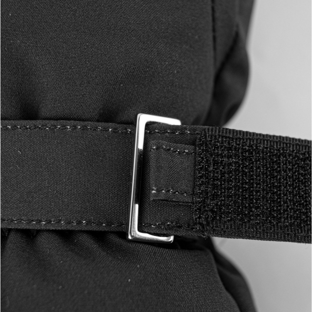Rękawiczki mają wygodny, regularny mankiet zapinany na klamrę. Warto zwrócić także uwagę na staranne przeszycia (szczególnie w okolicach palców) oraz ozdobne metalowe logo marki.