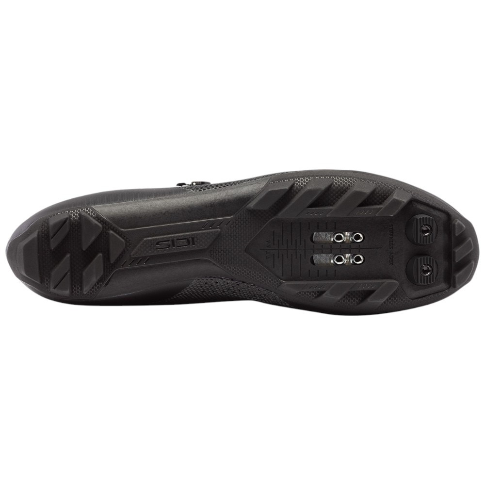 Zastosowane w obuwiu górskim podeszwy zewnętrze to X3CC z kompozytu karbonowego, których wskaźnik sztywności wynosi 8 w skali 5-12 zaproponowanej przez producenta. Taka wartość oznacza, że buty MTB Sidi Dominator X efektywnie przenoszą moc w czasie jazdy terenowej, a zarazem się wygodne dla stóp. Podeszwy wzbogacono o gumowe wstawki poprawiające przyczepność i ochronę przed uderzeniami.