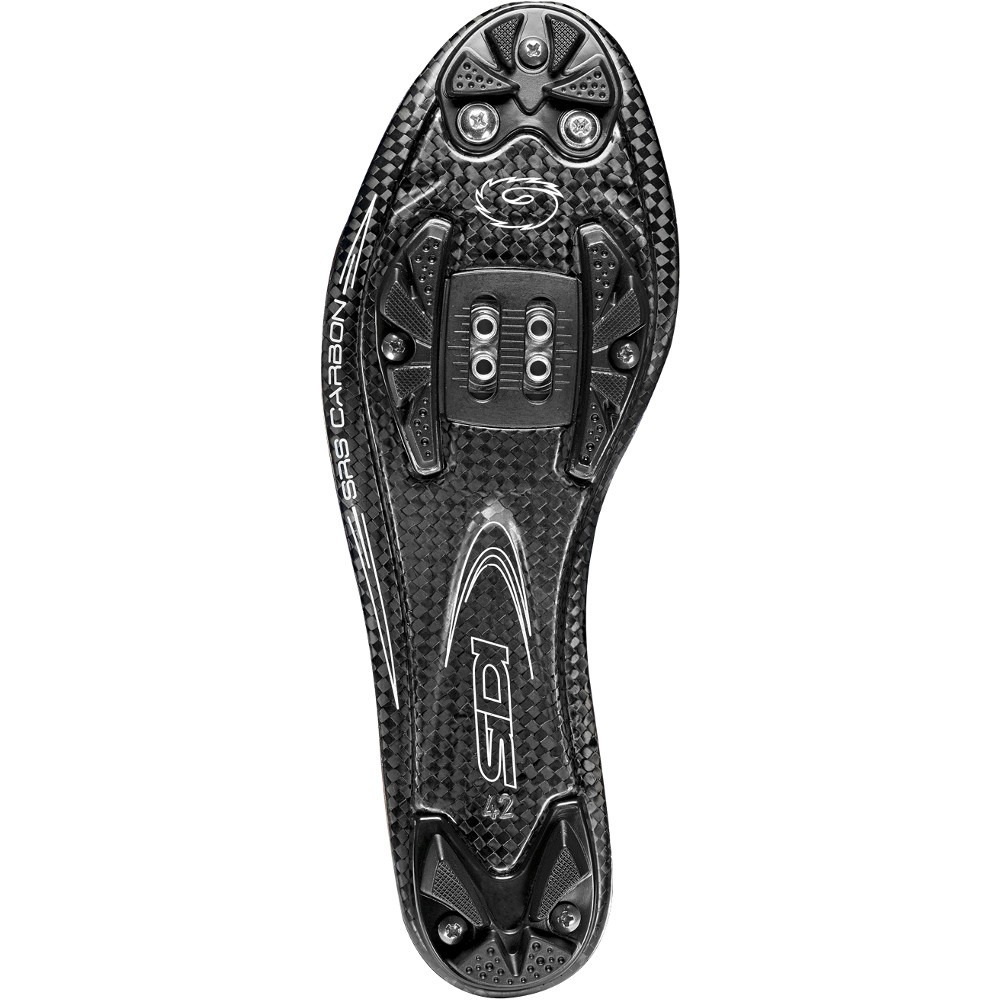MTB SRS Carbon-Ground - Podeszwa przenosi standard jazdy MTB na zupełnie inny, wyższy poziom. Wszystko to dzięki obniżeniu wagi pary butów o prawie 100 gram w stosunku do modelu MTB Dragon Carbon SRS. Obniżenie wagi nie wpłynęło negatywnie na poziom sztywności, czy wytrzymałości butów.