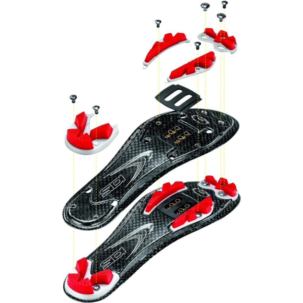 Adjustable Heel Retention Device - Dzięki temu systemowi możliwe jest regulowanie objętości tylnej części buta, tuż nad piętą. System usztywnia tylną część buta i umożliwia lepsze dopasowanie go w tej strefie. Dzięki możliwości regulacji objętości w okolicy pięty, but nie ma możliwości przesuwania się podczas intensywnych treningów. System jest regulowany za pomocą dwóch niezależnych wkrętów. By zacieśnić go wokół pięty, należy przykręcić wkręty w stronę znaku "+", analogicznie by zwiększyć jego rozstaw, w stronę znaku "-". System jest wymienny i w ofercie są dostępne części zamienne.