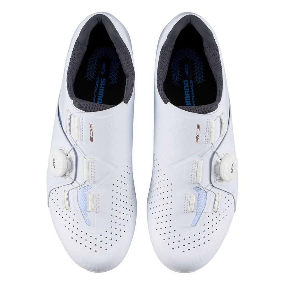 Shimano SH RC300 to wyczynowe damskie buty szosowe, które gwarantują idealne dopasowanie i optymalną wydajność pedałowania dzięki zastosowanym nowoczesnym technologiom. Przesunięte bardziej względem środka pokrętło BOA L6 na środkowej klapie sprawia, że buty są smuklejsze i pozwala na szybką regulację wiązania. Anatomiczny kształt idealnie dopasowuje się do damskich stóp i gwarantuje najwyższy komfort użytkowania. Lekka nylonowa podeszwa wzmocniona włóknem szklanym pozwala na lepsze przenoszenie mocy, a zintegrowana bezszwowa konstrukcja wierzchu sprawia, że buty są nadspodziewanie lekkie.