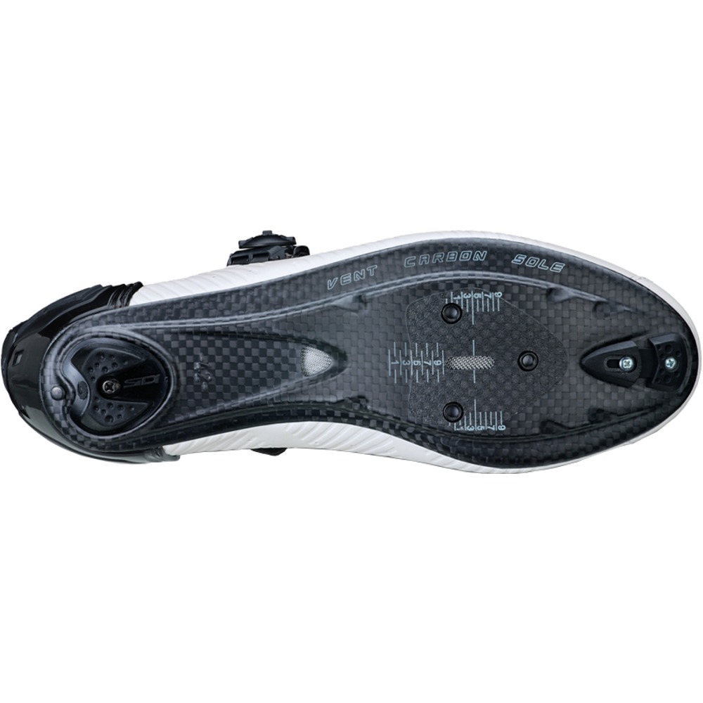 Sidi Wire 2S to zaawansowany model damskich butów szosowych zaprojektowany z myślą o osiągach i niskiej wadze. Podeszwa wykonana z włókna węglowego pozwoli na efektywne przeniesienie mocy podczas jazdy. Otwory umieszczone w spodniej części pozwolą na efektywną wentylację stopy oraz odprowadzą nadmiar ciepła podczas letnich tras. Nic nie stoi na przeszkodzie, aby je przesłonić i wykorzystać buty w chłodniejszym okresie.