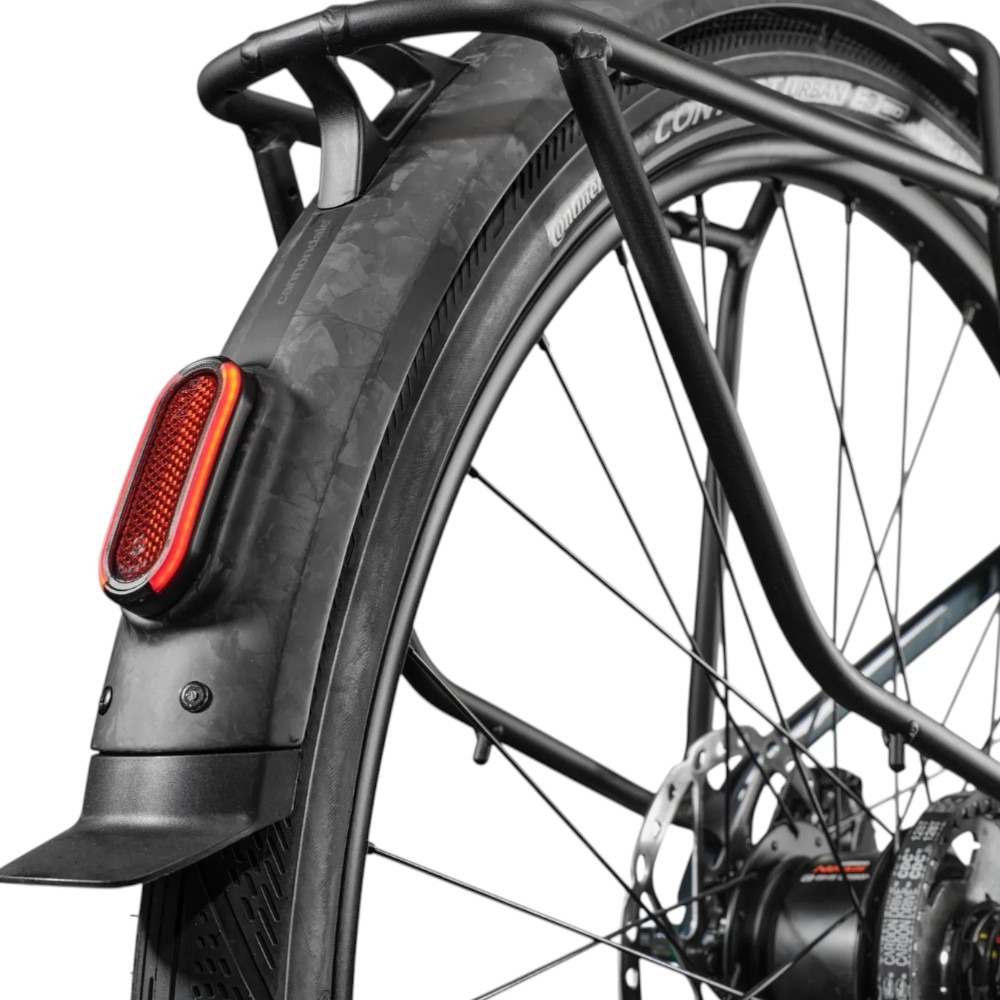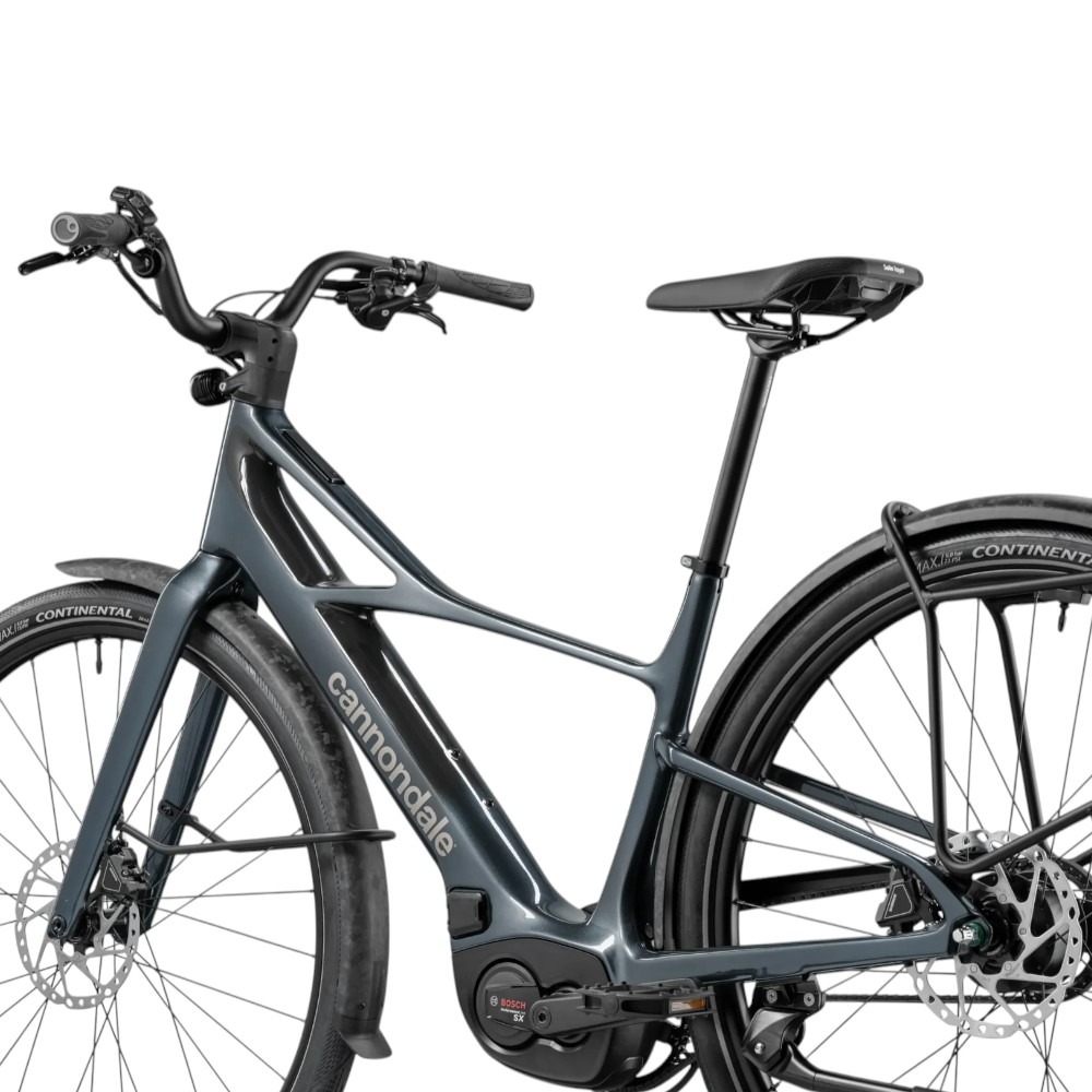 Cannondale na potrzeby tego roweru elektrycznego zaprojektował unikatowe błotniki, dzięki czemu są one idealnie dopasowane do ramy. Błotniki wyprodukowano z włókna węglowego (karbonu), więc są ultra lekkie i sztywne, a także nowoczesne – doskonale prezentują się w miejskiej dżungli.