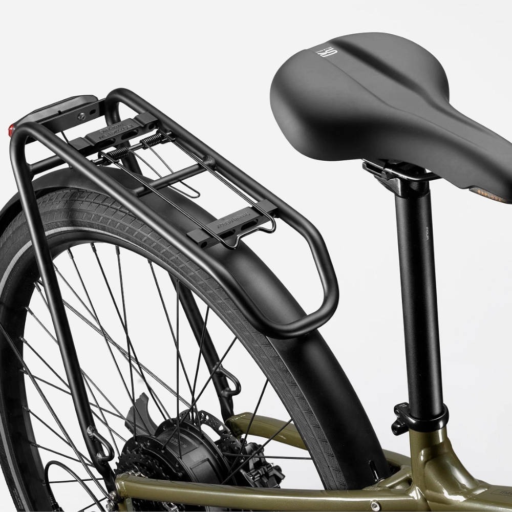 Silnik użyty w e-bike’u to Bafang G020 o maksymalnym momencie obrotowym 45 Nm. Umieszczono go w tylnej piaście. Współpracuje ze zintegrowaną baterią 360 Wh o długiej żywotności. Tak starannie dobrane podzespoły pozwalają cieszyć się swobodną, bezwysiłkową jazdą po mieście.
