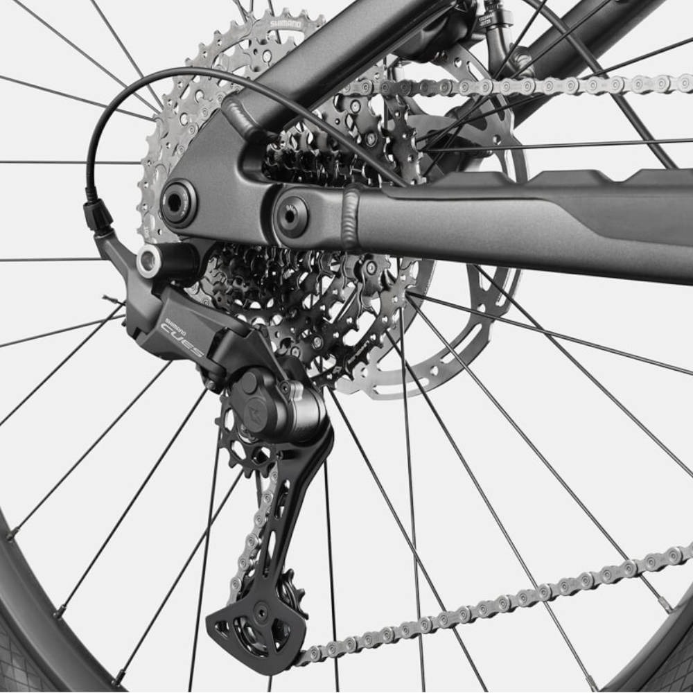 Napęd elektryczny to dzieło niemieckiej marki Bosch – jednostka Performance Line CX oferuje aż 100 Nm momentu obrotowego. Silnik zasilany jest przez akumulator o pojemności 600 Wh, co przekłada się na długie zasięgi i pełną swobodę jazdy w terenie. Z kolei tradycyjny układ napędowy oparty został na japońskiej grupie Shimano CUES w konfiguracji 1x11, co pozwala precyzyjnie dobrać bieg do sytuacji na szlaku. O skuteczne hamowanie dbają niezawodne, hydrauliczne hamulce tarczowe Tektro M535 z czterema tłoczkami, zapewniające dużą siłę i precyzję działania.