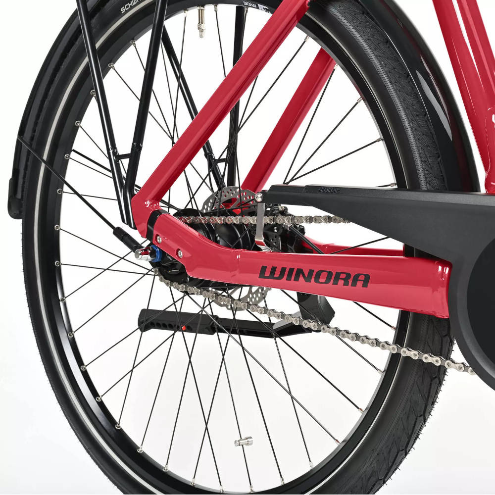 Rower elektryczny Winora Tria N8 wykorzystuje napęd 1x8 Shimano Nexus z przerzutkami w piaście oraz hamulce tarczowe Shimano Alivio BR-MT200, a także hamulec nożny. Tak dobrana grupa sprzętowa czyni e-bike Tria N8 bardzo intuicyjnym w obsłudze i bezpiecznym.