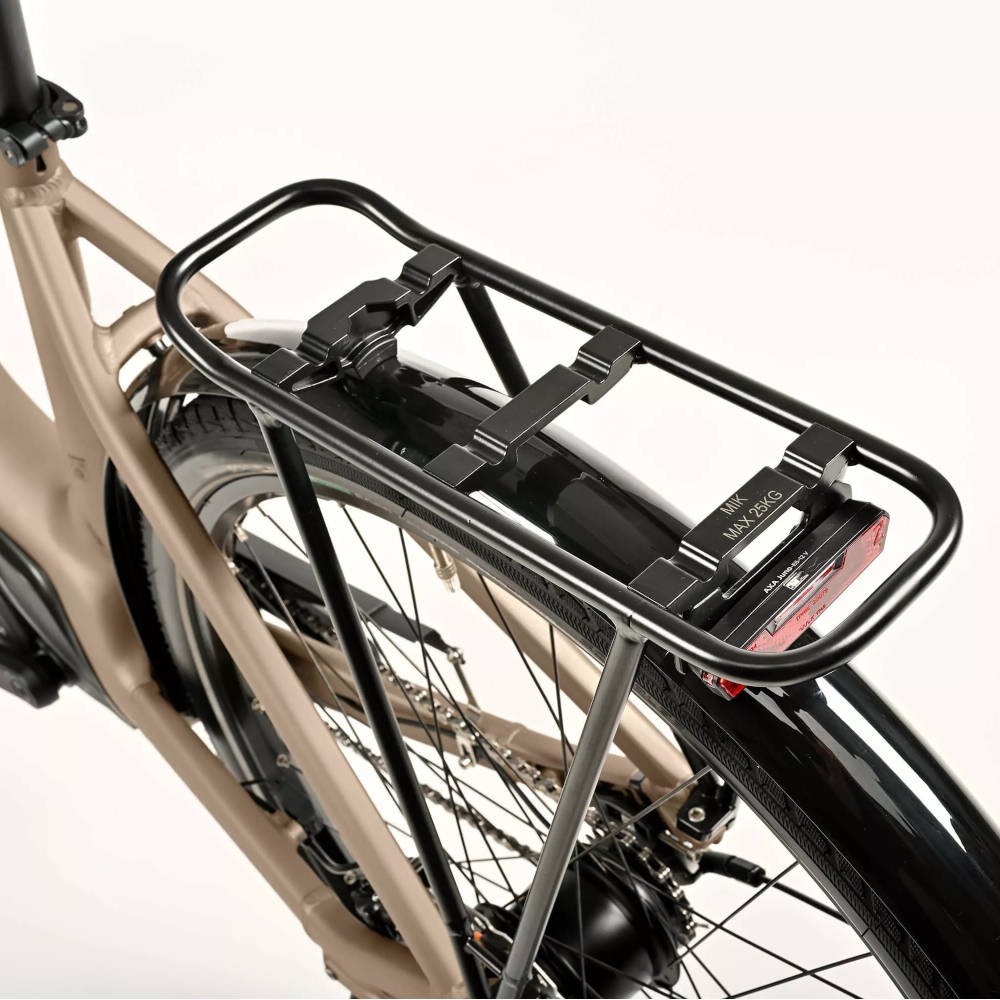 Twórcy wzbogacili e-bike Winora Tria N8f E o szereg dodatkowych udogodnień. W komplecie znajdziesz oświetlenie przednie i tylne, osłonę łańcucha, błotniki, stopkę oraz bagażnik tylny.