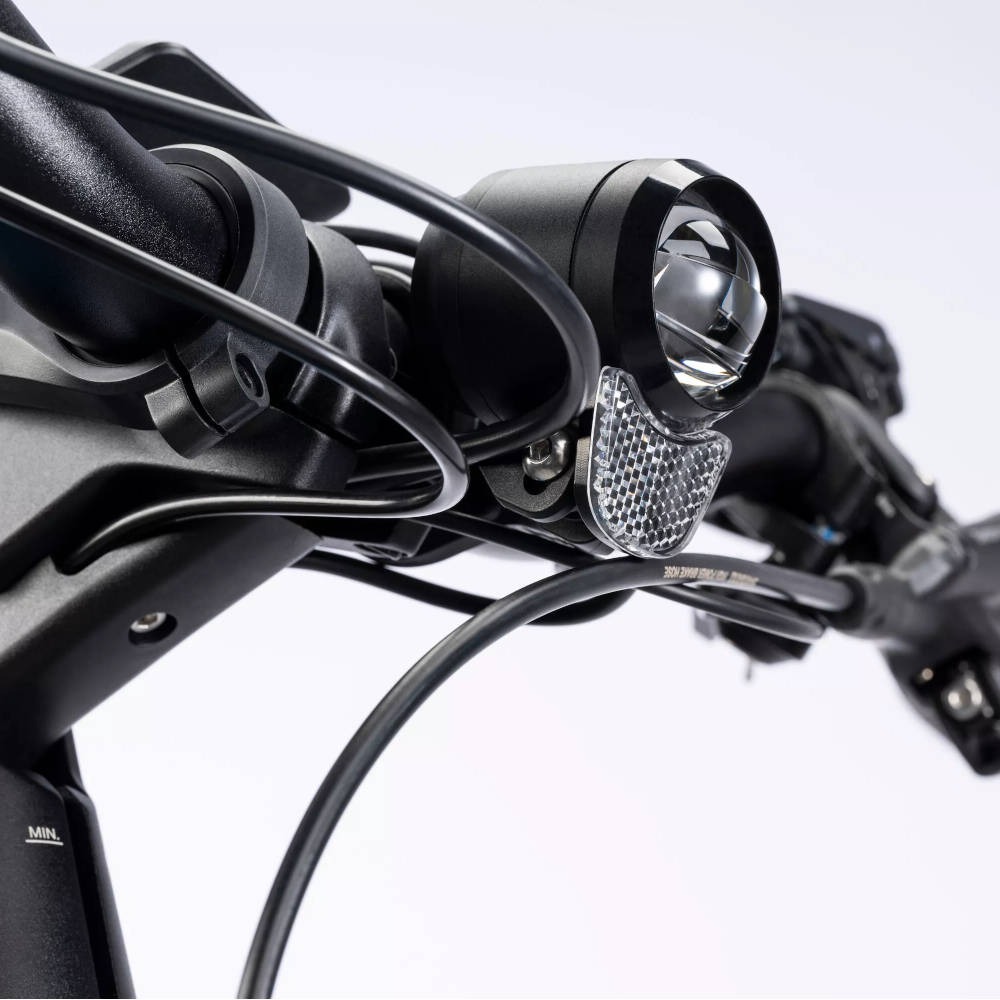 Rower elektryczny Winora Yakun X12 High to także bogaty komplet wyposażenia dodatkowego. Wraz z e-bikiem otrzymasz: lampkę przednią i tylną, błotniki, stopkę oraz bagażnik, a łańcuch rowerowy został osłonięty.