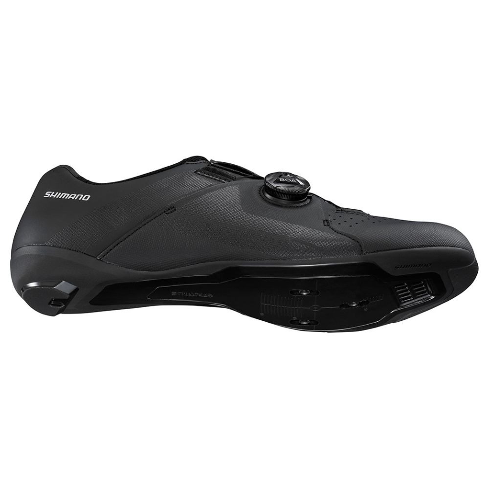 Shimano SH RC300 to wyczynowe buty szosowe, które gwarantują idealne dopasowanie i optymalną wydajność pedałowania dzięki zastosowanym nowoczesnym technologiom. Przesunięte bardziej względem środka pokrętło BOA L6 na środkowej klapie sprawia, że buty są smuklejsze i pozwala na szybką regulację wiązania. Lekka nylonowa podeszwa wzmocniona włóknem szklanym pozwala na lepsze przenoszenie mocy, a zintegrowana bezszwowa konstrukcja wierzchu sprawia, że buty są nadspodziewanie lekkie.