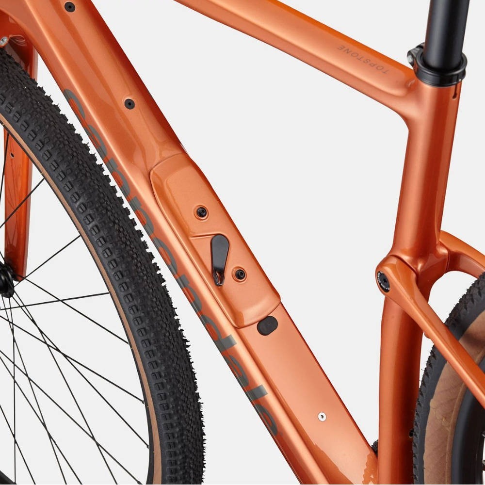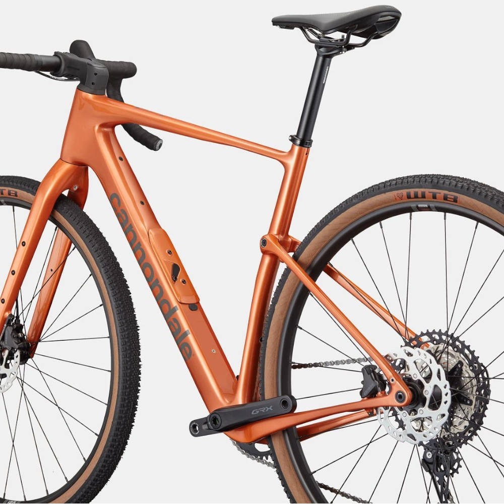 Podstawą roweru gravelowego Cannondale Topstone Carbon 3 GRX 1x12 jest rama w całości wykonana z włókna węglowego – lekka, a przy tym niezwykle wytrzymała i dobrze amortyzująca. Współpracuje ona z opatentowanym tylnym zawieszeniem Kingpin, które tłumi drgania i zwiększa komfort, szczególnie podczas długich godzin w siodle i jazdy z obciążeniem. Konstrukcja ramy została opracowana również pod kątem funkcjonalności: znajdziesz tu wiele punktów montażowych na bidony i torby, a prześwit na szersze niż standardowe opony daje Ci swobodę wyboru ogumienia – od szybkich gravelówek po modele terenowe.