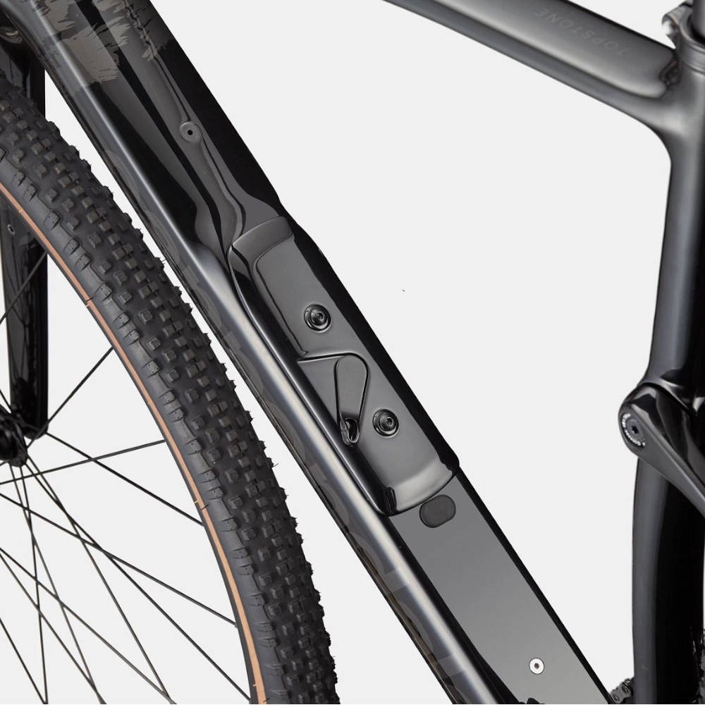 Podstawą roweru gravelowego Cannondale Topstone Carbon 3 GRX 2x12 jest rama w całości wykonana z włókna węglowego – lekka, a przy tym niezwykle wytrzymała i dobrze amortyzująca. Współpracuje ona z opatentowanym tylnym zawieszeniem Kingpin, które tłumi drgania i zwiększa komfort, szczególnie podczas długich godzin w siodle i jazdy z obciążeniem. Konstrukcja ramy została opracowana również pod kątem funkcjonalności: znajdziesz tu wiele punktów montażowych na bidony i torby, a prześwit na szersze niż standardowe opony daje Ci swobodę wyboru ogumienia – od szybkich gravelówek po modele terenowe.