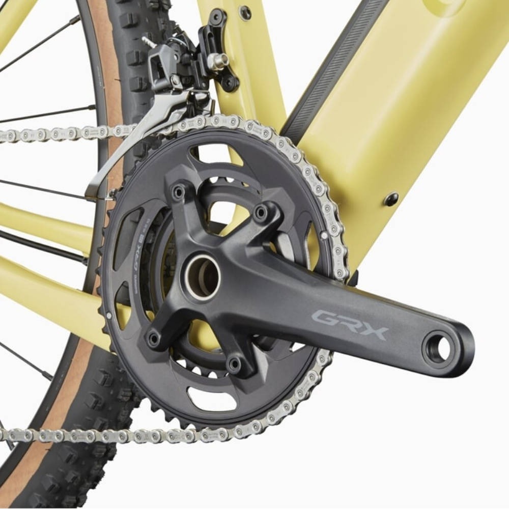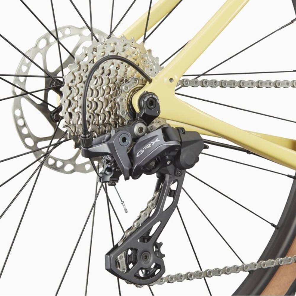 Jednoślad ma na wyposażeniu zaawansowaną grupę osprzętową Shimano GRX – stworzoną specjalnie do jazdy po szutrach i jak wszystkie komponenty japońskiej marki – słynącą z bezawaryjności. 12-biegów pomoże podczas technicznych podjazdów i wymagających zjazdów. Z kolei w kontrolowaniu prędkości na pewno świetnie spiszą się responsywne hydrauliczne hamulce tarczowe Shimano GRX 400 – doskonałe na każdą pogodę.