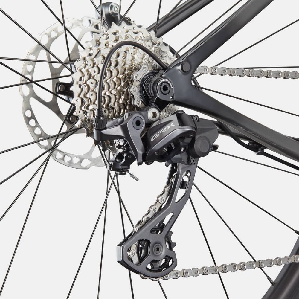 Jednoślad ma na wyposażeniu zaawansowaną grupę osprzętową Shimano GRX – stworzoną specjalnie do jazdy po szutrach i jak wszystkie komponenty japońskiej marki – słynącą z bezawaryjności. 12-biegów pomoże podczas technicznych podjazdów i wymagających zjazdów. Z kolei w kontrolowaniu prędkości na pewno świetnie spiszą się responsywne hydrauliczne hamulce tarczowe Shimano GRX 400 – doskonałe na każdą pogodę.