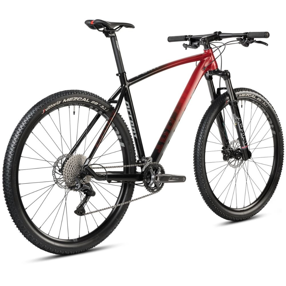 Rower MTB Accent Point Deore zbudowany jest na bazie w pełni aluminiowej ramy. Jest to najpopularniejszy wybór projektantów, ponieważ stop ten cechuje się bardzo korzystnym stosunkiem wytrzymałości do wagi, a dodatkowo łatwo się go formuje i jest tani w produkcji – idealny dla nowicjuszy. Ramę wyprofilowane w taki sposób, aby ułatwić przyjmowanie optymalnej pozycji do pokonywania zjazdów i podjazdów na wymagających trasach. Rower MTB Accent Point Deore jest hardtailem, więc dysponuje amortyzacją widelca przedniego (powietrzny RST Aerial o skoku 100 mm), która pomaga podczas przemierzania wyboistych odcinków.