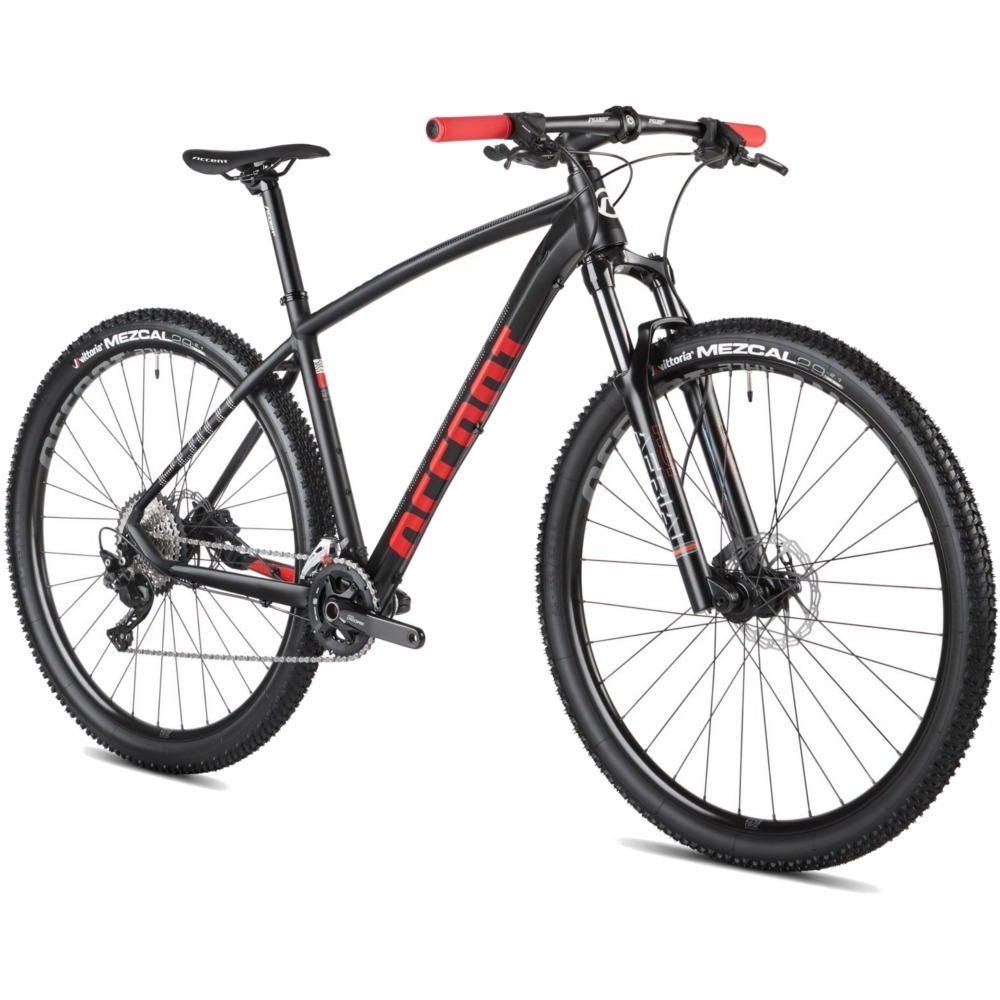 Accent Point Deore to rozsądny hardtail przystosowany do jazdy górskiej. Aluminiowa rama z osią przelotową zapewnia bardzo dobrą sztywność. Wygodna geometria pozwala na wiele godzin komfortowej jazdy, ale nie brakuje jej sportowego zacięcia. Powietrzny amortyzator RST Aerial pozwala na dostosowanie pracy do użytkownika i swietnie wybiera nierówności. Napęd z dwoma blatami Shimano Deore idealnie sprawdzi się podczas maratonów, gdzie bez problemu dobierzemy odpowiednie przełożenie. Przerzutka ze sprzęgłem uniemożliwia spadanie łańcucha. Hydrauliczne hamulce tarczowe pozwalają zapanować nad rowerem w trudnym terenie. Wytrzymałe 29-calowe koła wyposażono w opony Vittoria Mezcal o uniwersalnym bieżniku. Accent Point Deore to uniwersalna konstrukcja gotowa na przygodę w lesie.