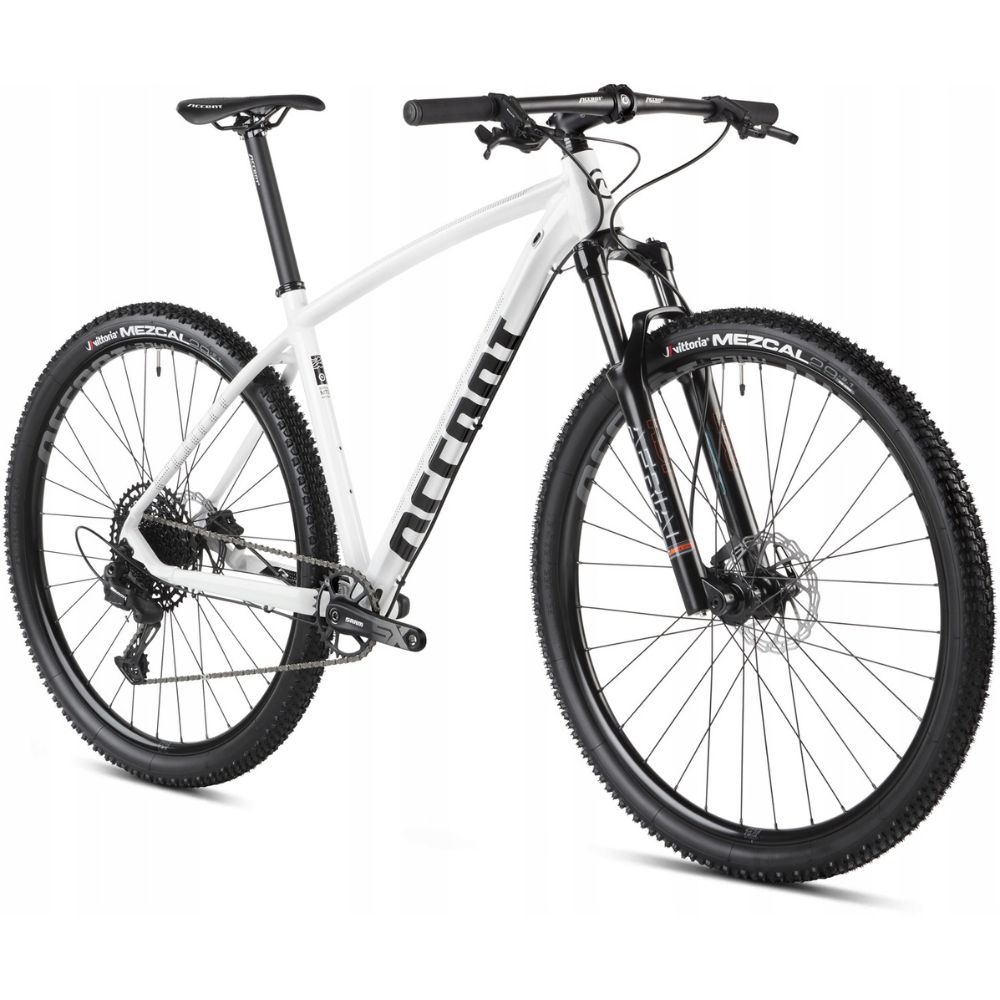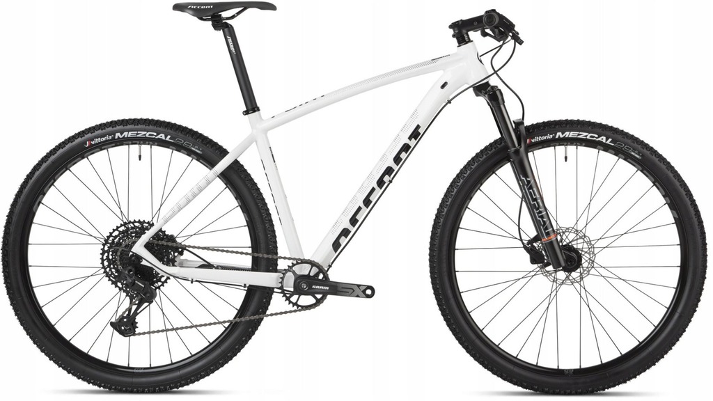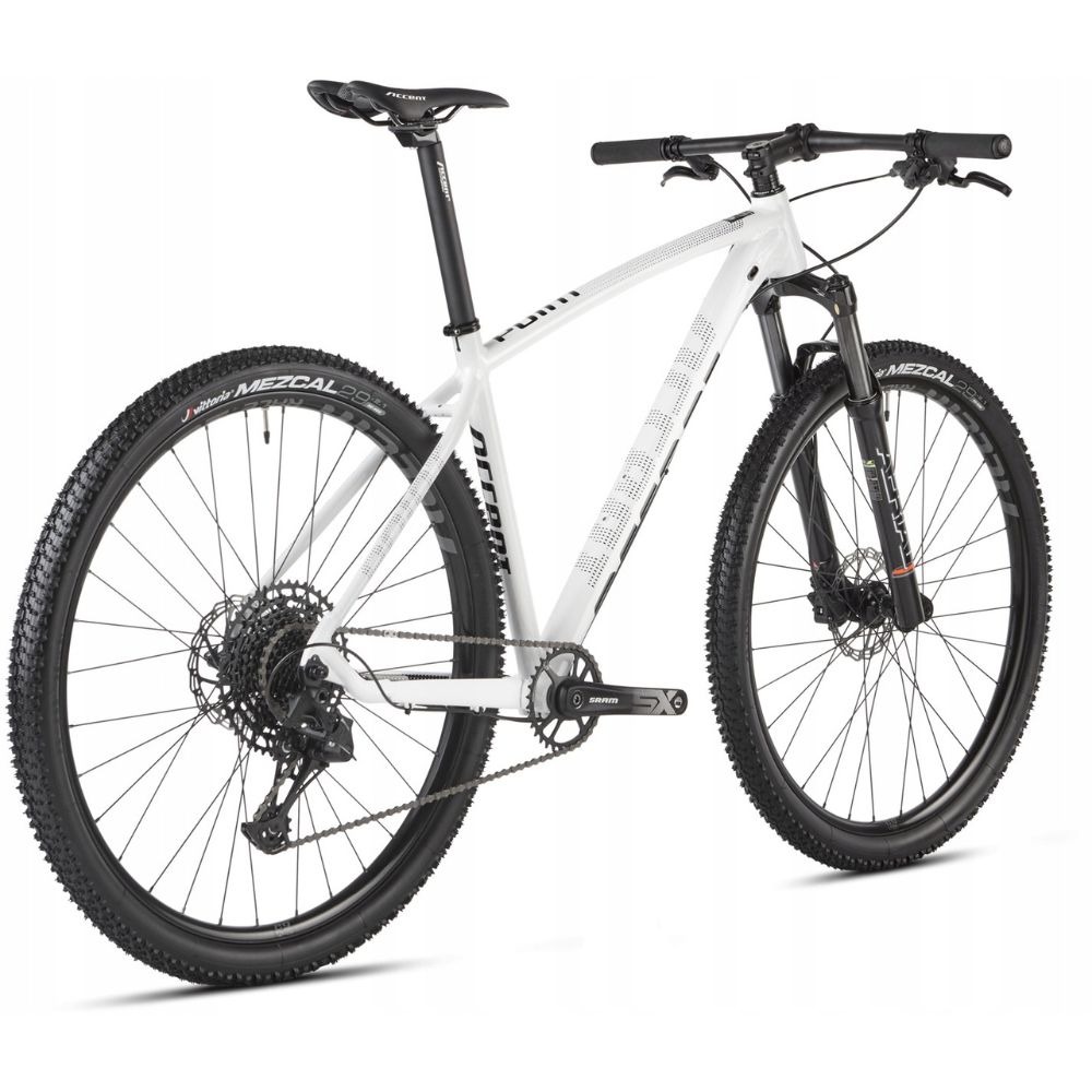 Accent Point SX Eagle to rozsądny hardtail przystosowany do jazdy górskiej. Aluminiowa rama z osią przelotową zapewnia bardzo dobrą sztywność. Wygodna geometria pozwala na wiele godzin komfortowej jazdy, ale nie brakuje jej sportowego zacięcia. Powietrzny amortyzator RST Aerial pozwala na dostosowanie pracy do użytkownika i swietnie wybiera nierówności. Napęd Sram SX Eagle to nowoczesna, 12-rzędowa grupa o świetnym stosunku ceny do jakości. Szeroki zakres przełożeń umożliwia zdobywanie szczytów bez większego wysiłku. Hydrauliczne hamulce tarczowe pozwalają zapanować nad rowerem w trudnym terenie. Wytrzymałe 29-calowe koła wyposażono w opony Vittoria Mezcal o uniwersalnym bieżniku. Accent Point SX Eagle to solidny rower górski na początek przygody.