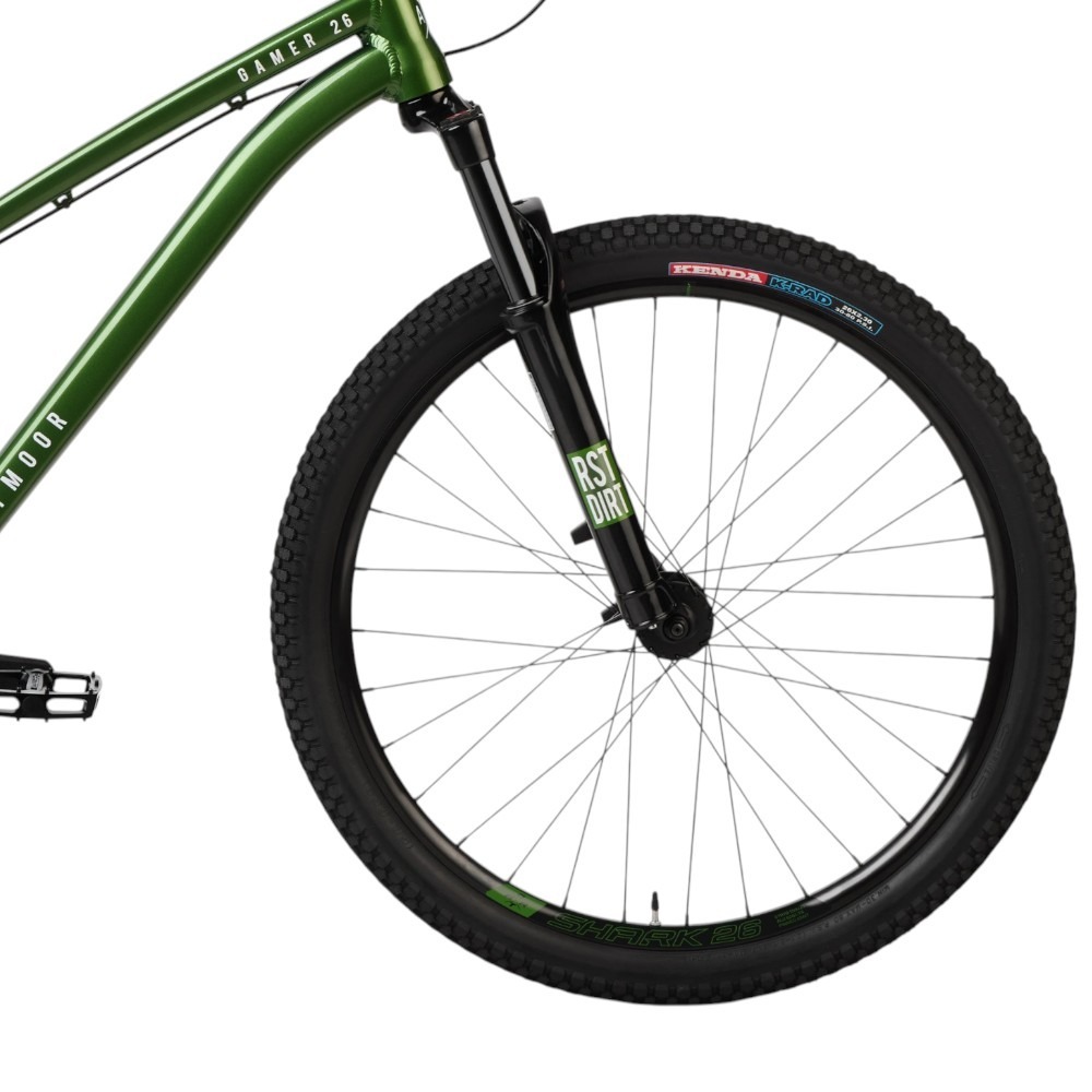 Rower Dartmoor Gamer Intro opiera swoją konstrukcję na solidnej, aluminiowej ramie. Materiał ten świetnie równoważy lekkość z wytrzymałością, a do tego stop jest łatwy w formowaniu. Geometrię jednośladu stworzono na podstawie sprawdzonego Two6Player, co przekłada się na wysoką stabilność i kontrolę przy wykonywaniu sztuczek. Ramę uzupełnia amortyzator przedni z tłumieniem olejowym – RST Dirt RA. Skok widelca wynosi aż 100 mm, co pozwala bezpiecznie oraz efektywnie przezwyciężać kolejne kolarskie wyzwania.