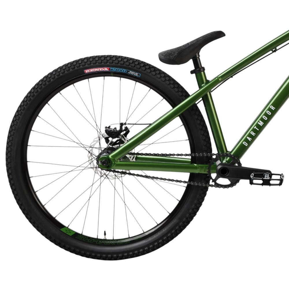 Za sprawą 26-calowych kół z autorskimi, wzmocnionymi obręczami marki – Dartmoor Shark – rower jest bardzo zwinny i dobrze znosi uderzenia o podłoże. Fabrycznie jednoślad korzysta z opon Kenda K-Rad – dających przyczepność zarówno na dircie, jak i asfalcie.