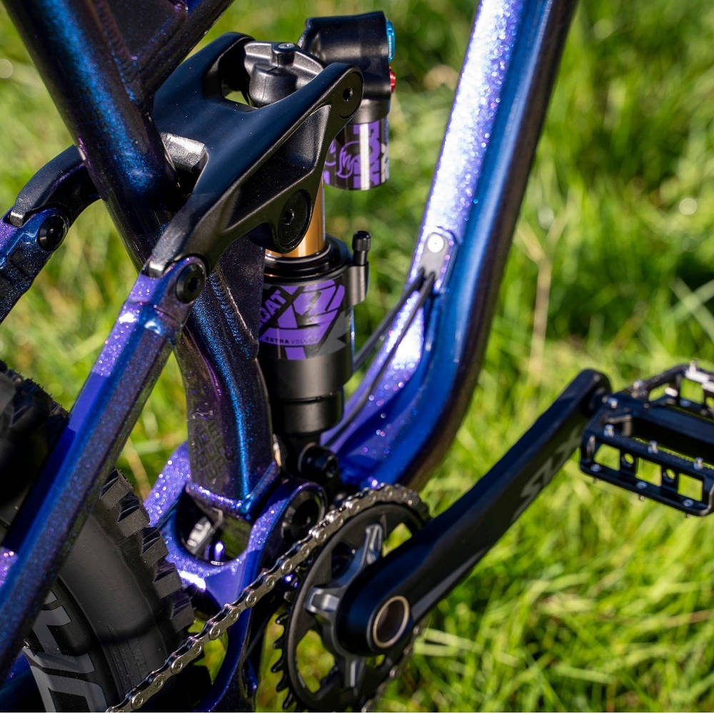 Geometra ramy ma za zadanie pomagać rowerzyście w przyjmowaniu technicznej pozycji do jazdy enduro. Co bardzo ważne, jednoślad należy do grupy tzw. full suspension, co oznacza, że dysponuje on pełnym zawieszeniem. Z przodu znajduje się widelec amortyzowany amerykańskiej produkcji Fox 36 Factory z tłumikiem Grip 2 i powłoką Kashima, a z tyłu damper Fox Float X2 Factory (również w najwyższej wersji Kashima). Oba komponenty oferują wysoki skok wynoszący aż 160 mm, który pozwoli Ci pewnie i bezpiecznie pokonywać nawet najtrudniejsze odcinki. Amortyzacja doskonale poradzi sobie z niwelowaniem wszelkich drgań od podłoża, zapewniając pewną kontrolę jednośladu, a co za tym idzie – bezpieczeństwo.